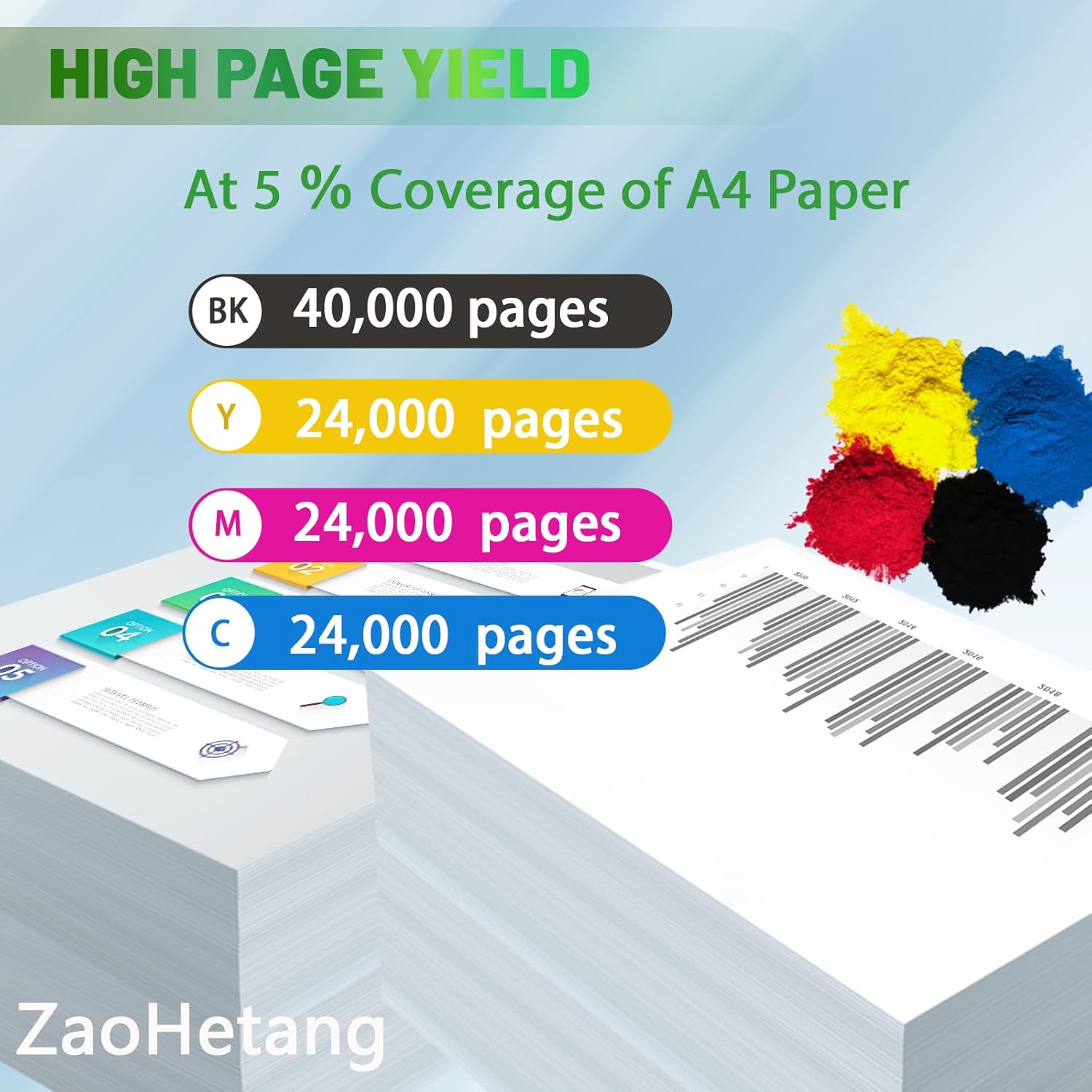 - Page yield: 40,000 pages per black, and 24,000 pages per color toner cartrdges 5% coverage