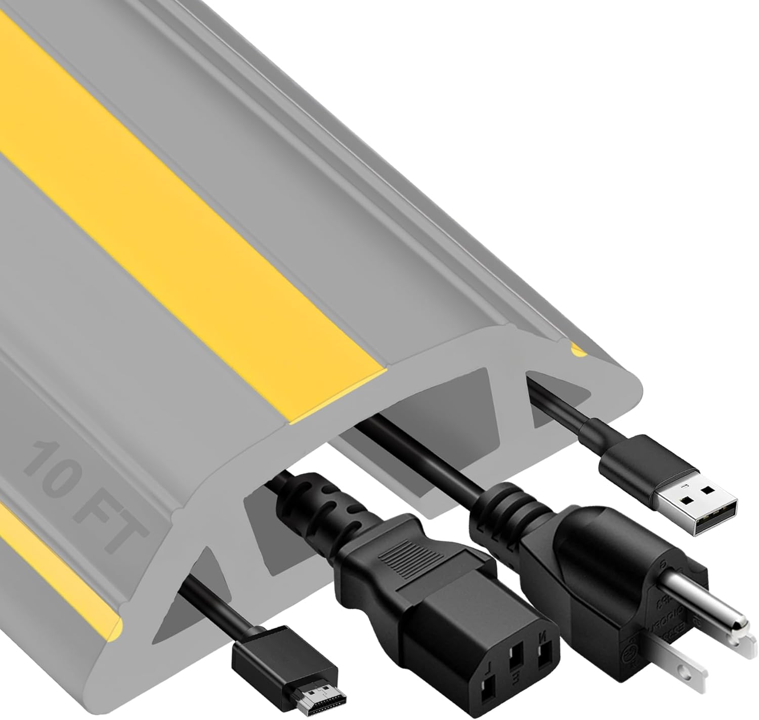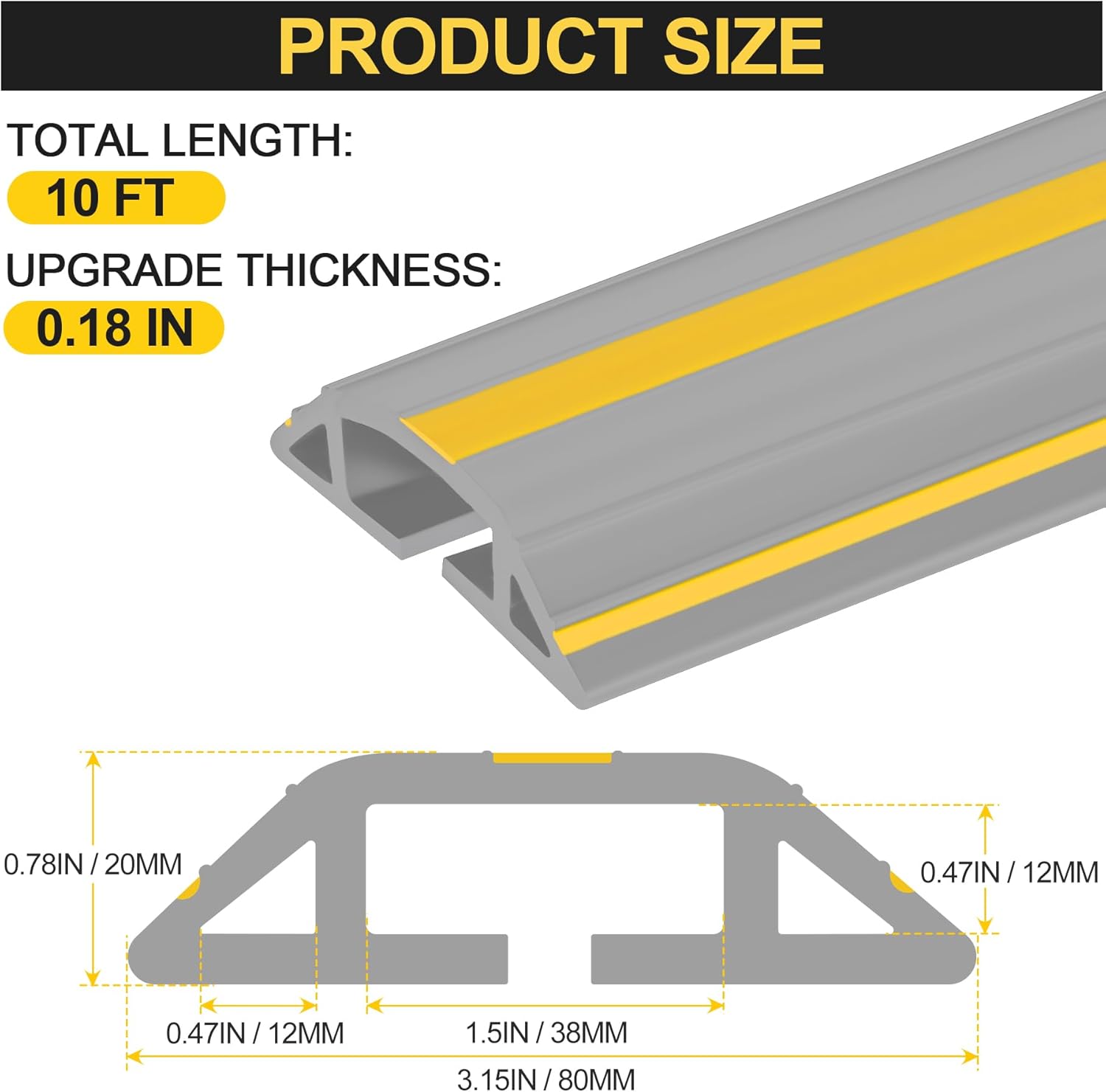 - 【Large Capacity】Floor wire cover for cords has plenty of space, can easily hold up to 5 cables. Wires can be stored in 3 channels without getting tangled. The middle channel measures 1.5 x 0.47 inches, two side channels measure 0.47 x 0.39 inches. Floor cable management is 10 feet long. Please check the size of the cable or wire before purchasing