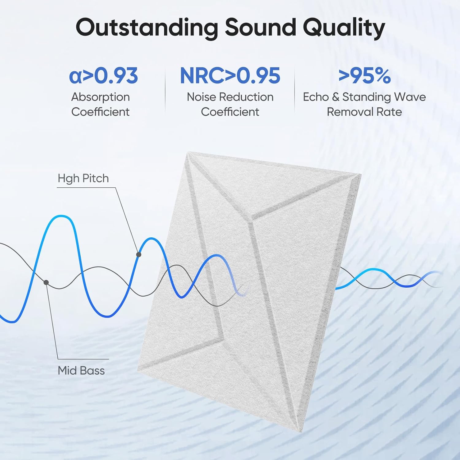 - Exceptional Sound Absorption -- Made with high-density polyester fiber (420 lb/m³), our panels achieve a sound absorption coefficient up to 0.95, effectively reducing echo and ambient noise.