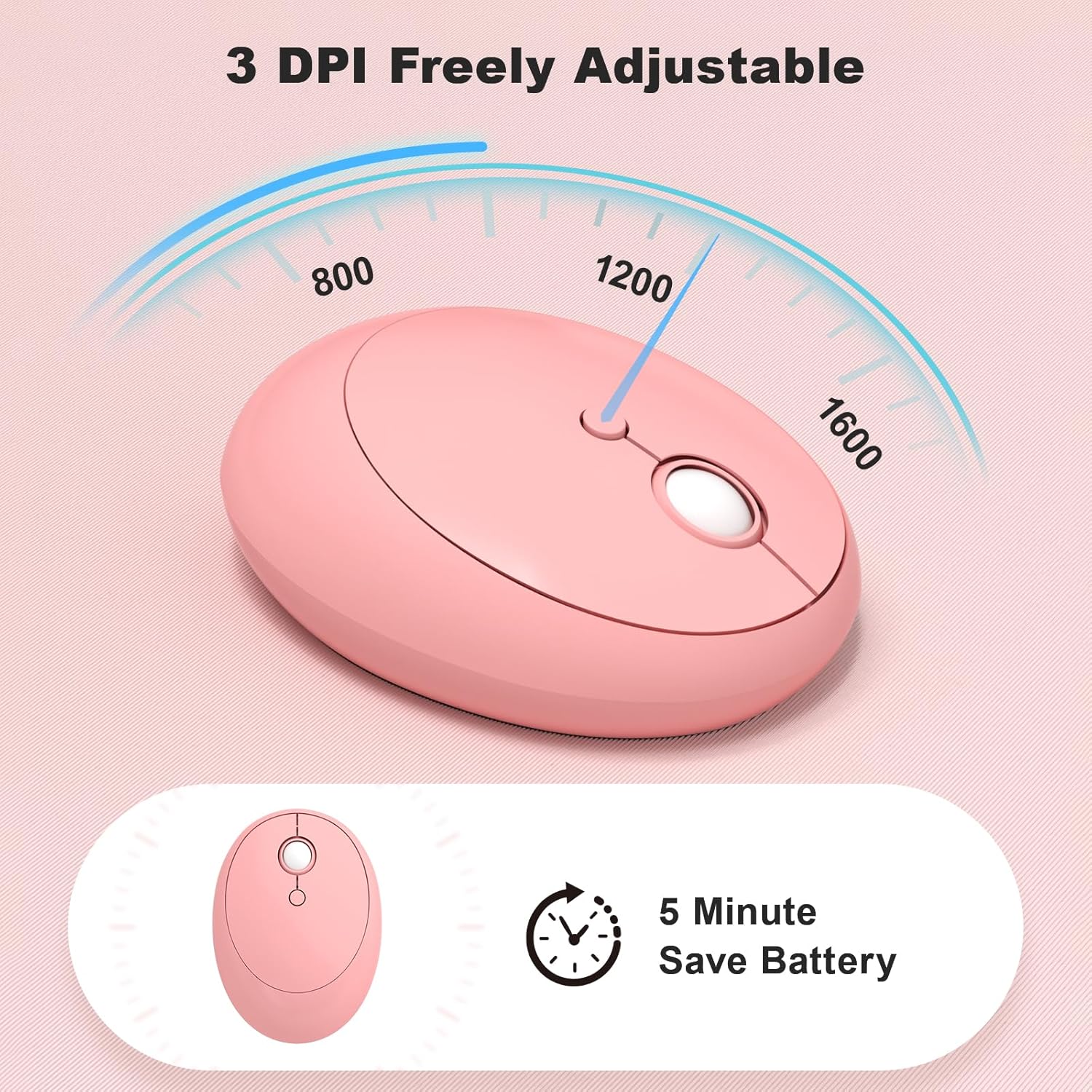Wireless Keyboard and Mouse Combo, MOWUX - Modern Compact Layout, Colorful Compact Candy Mouse and Retro Round Keyboard Set with Cover, for PC/Laptop/Windows/Mac - Pink Colorful
