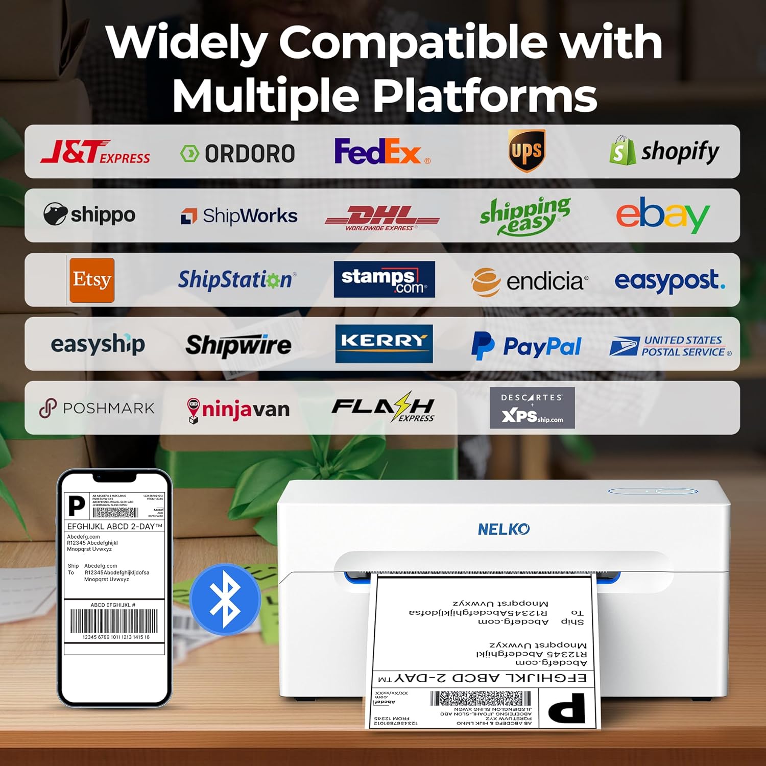- [Wireless Bluetooth Printing] Effortless Label Printing in 3 Simple Steps-Connect, design, print. This shipping label printer connect seamlessly via the "NELKO" app—works with iOS 13+, Android, Windows 7+, and Mac devices with M1/M2 chips. Enjoy wireless printing across systems, with simple app setup that gets you started in minutes