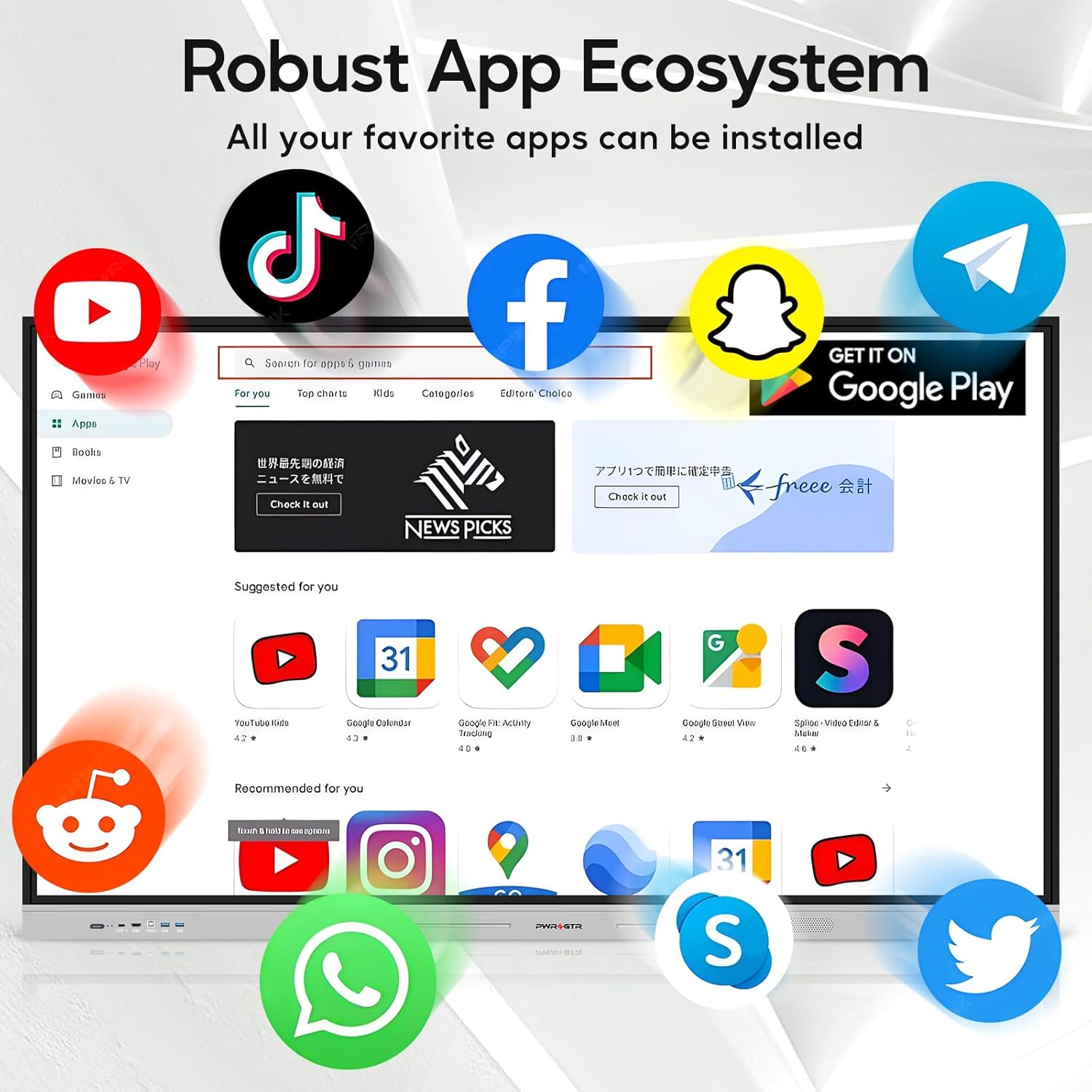 - Powerful All-in-One Smart Hub: Our interactive smart board features a quad-core processor, Android 14 OS, 8GB RAM, and 128GB SSD storage. More than a traditional whiteboard, it doubles as a multifunctional hub combining a TV, projector, and high-resolution display. Perfect for homes, classrooms, offices, and business environments