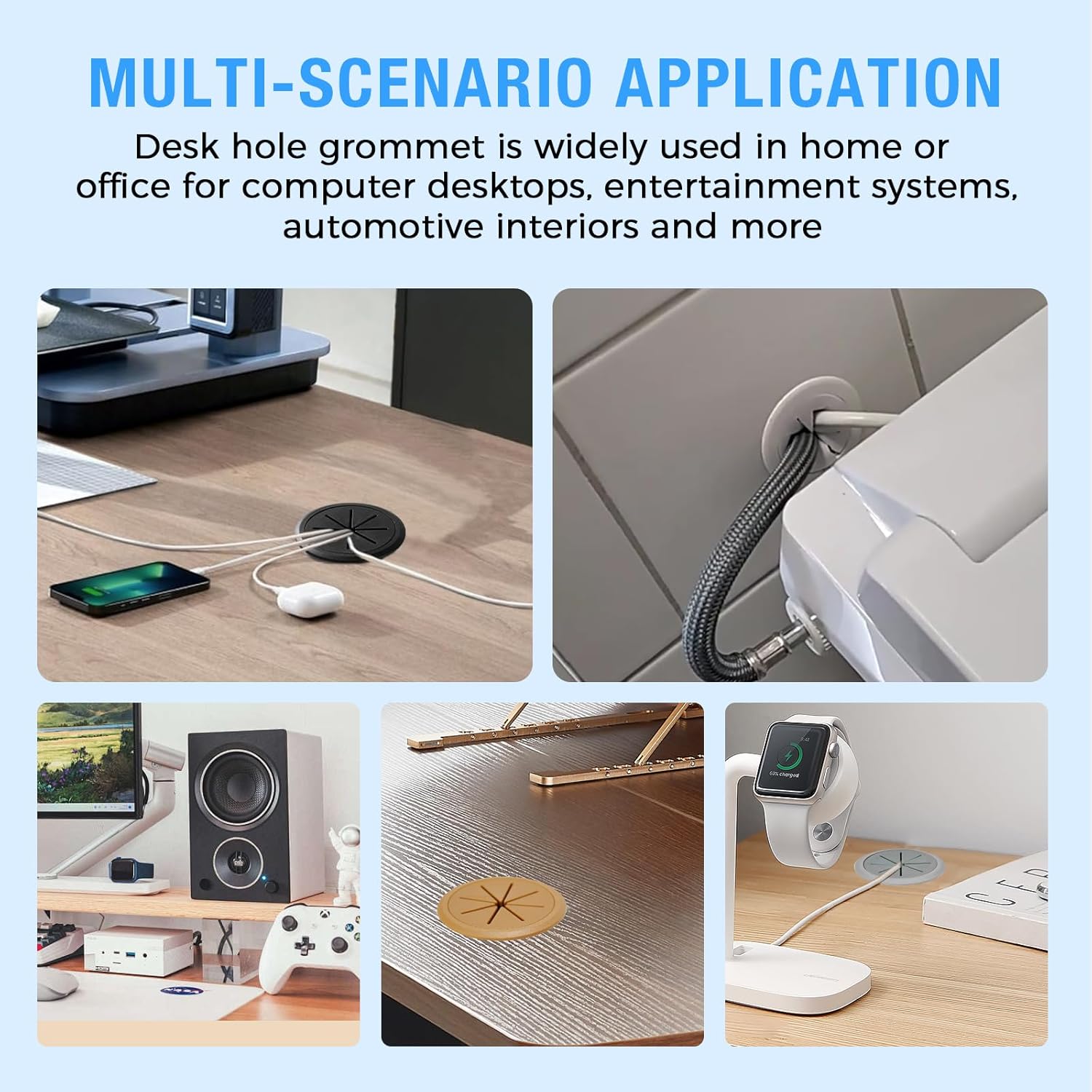 - Wide Applications: The desk hole grommet is not only limited to computer countertops, computer components, office desks, office equipment; It is widely used in dressers, lockers, wall cabinets, furniture etc; BOPOREAE furniture hole covert is a great option to manage cables or wires at home, office and school