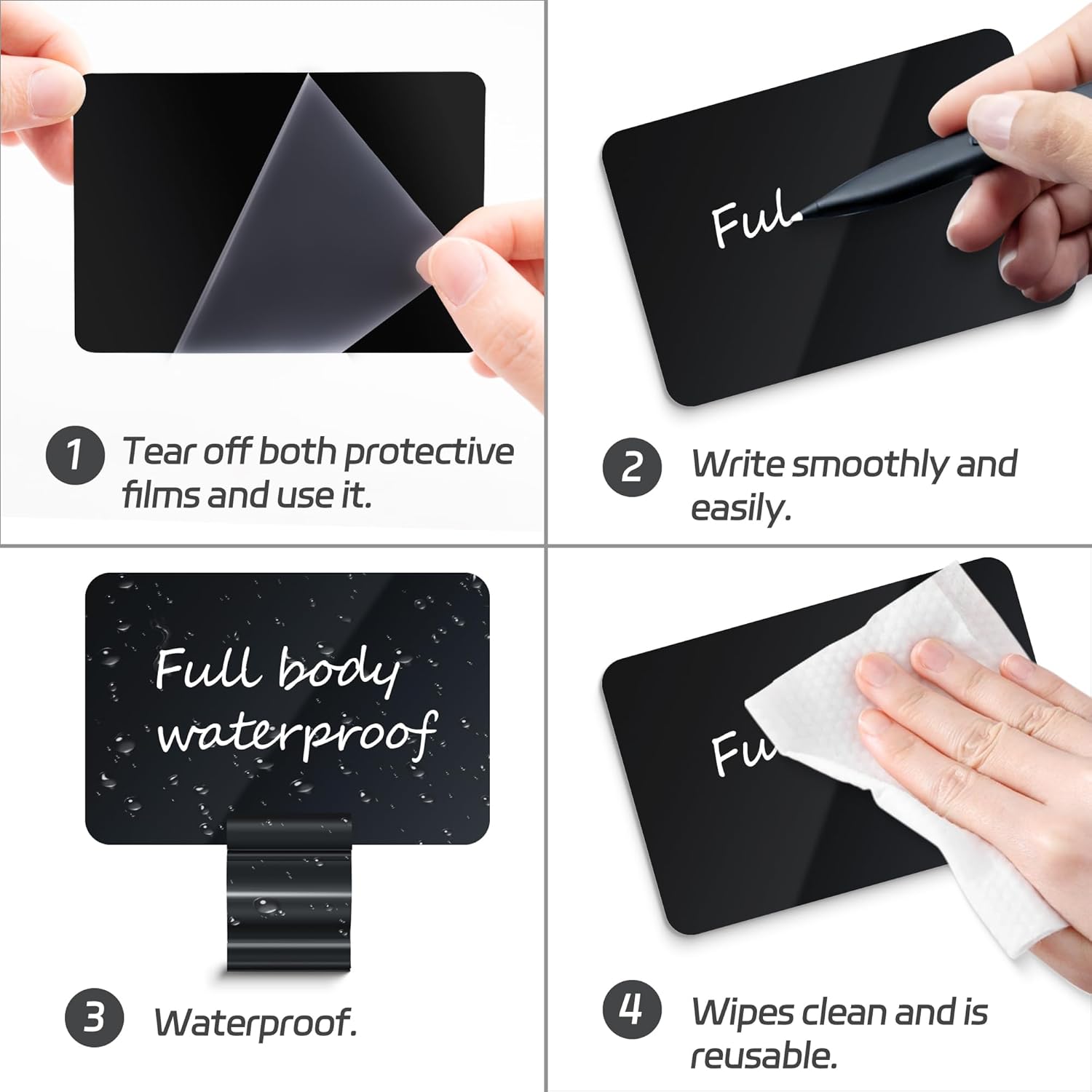 - Easy to Use: The plastic label holder just needs to clip it on the edge of the food tray or bowl, you can write on the label board with liquid chalk, no need for extra stickers and labels. Please tear off all protective films before using the label board for a brighter appearance.Please Note, liquid chalk is not included