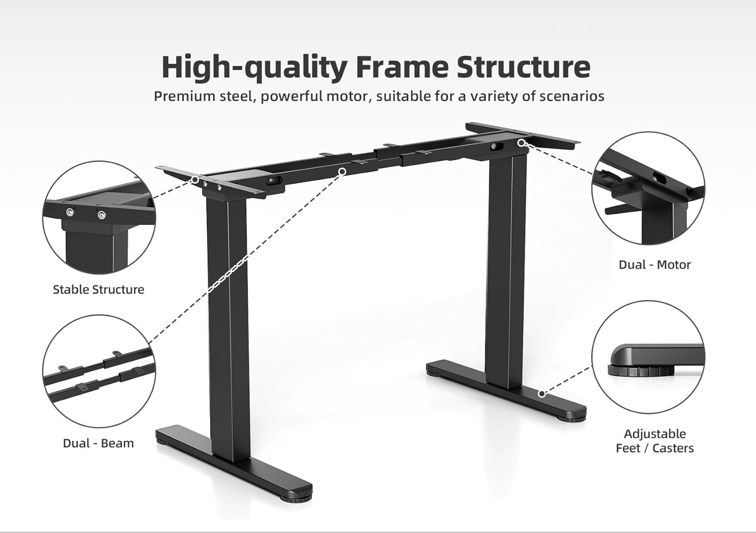 Claiks Dual Motor Standing Desk Frame, Electric Stand Up Desk Legs Frame Workstation Up to 63",T-Shaped Adjustable Standing Computer Desk for Home and Office, (Black Frame only)
