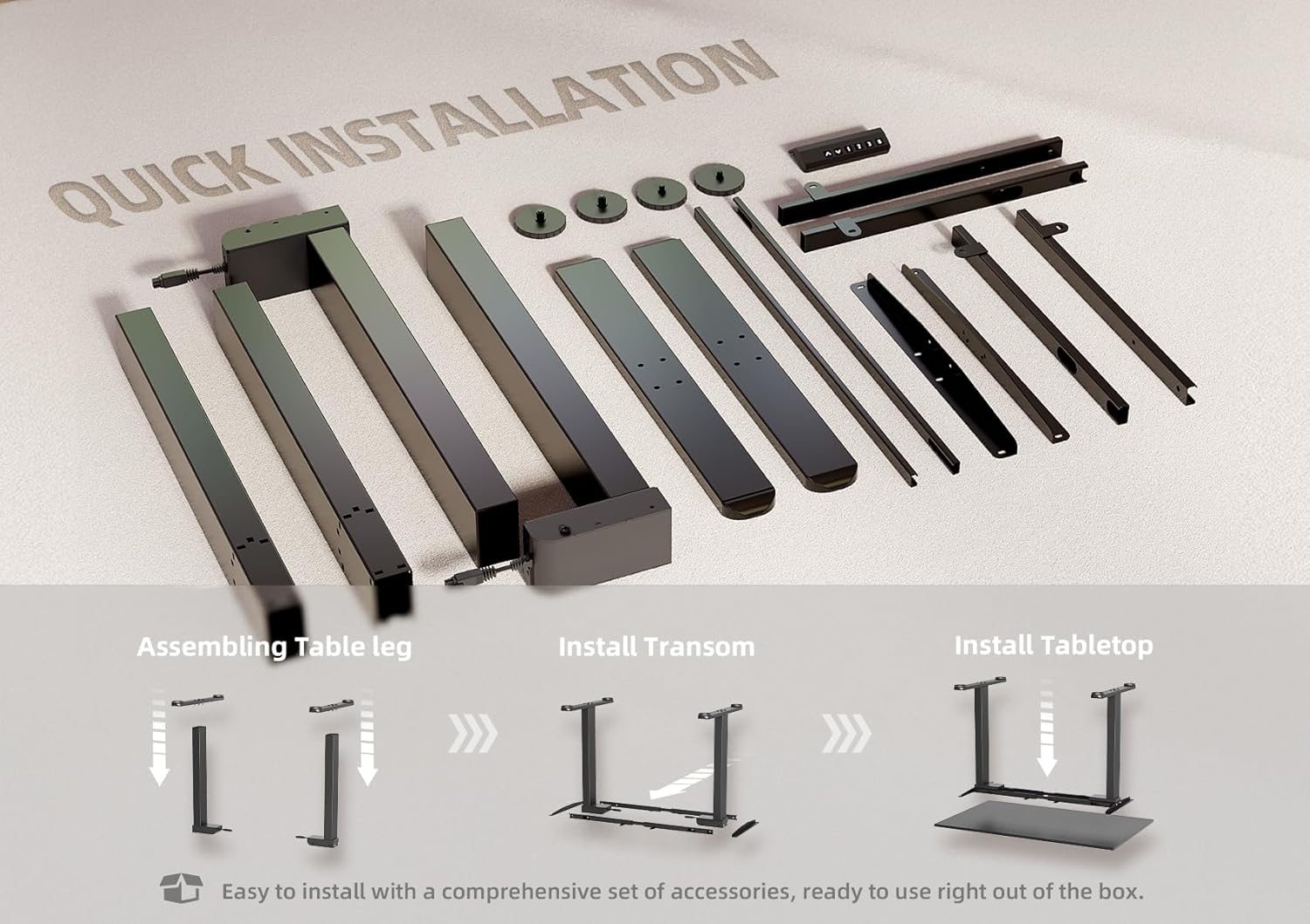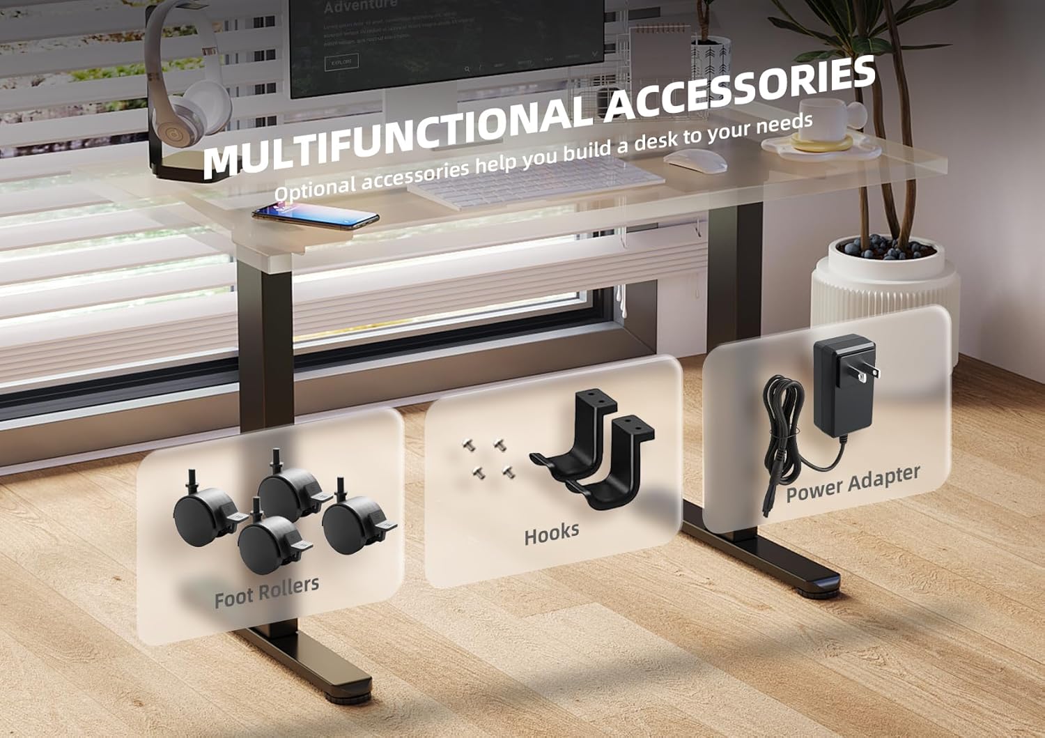 - Worry-free Usage: We have provided you with a comprehensive set of accessories for immediate use, including Control Panel (x1), Power Supply (x1), A screw kit, Foot Pads&Casters (x4), and Hangers (x2).(Tabletop must be purchased separately).