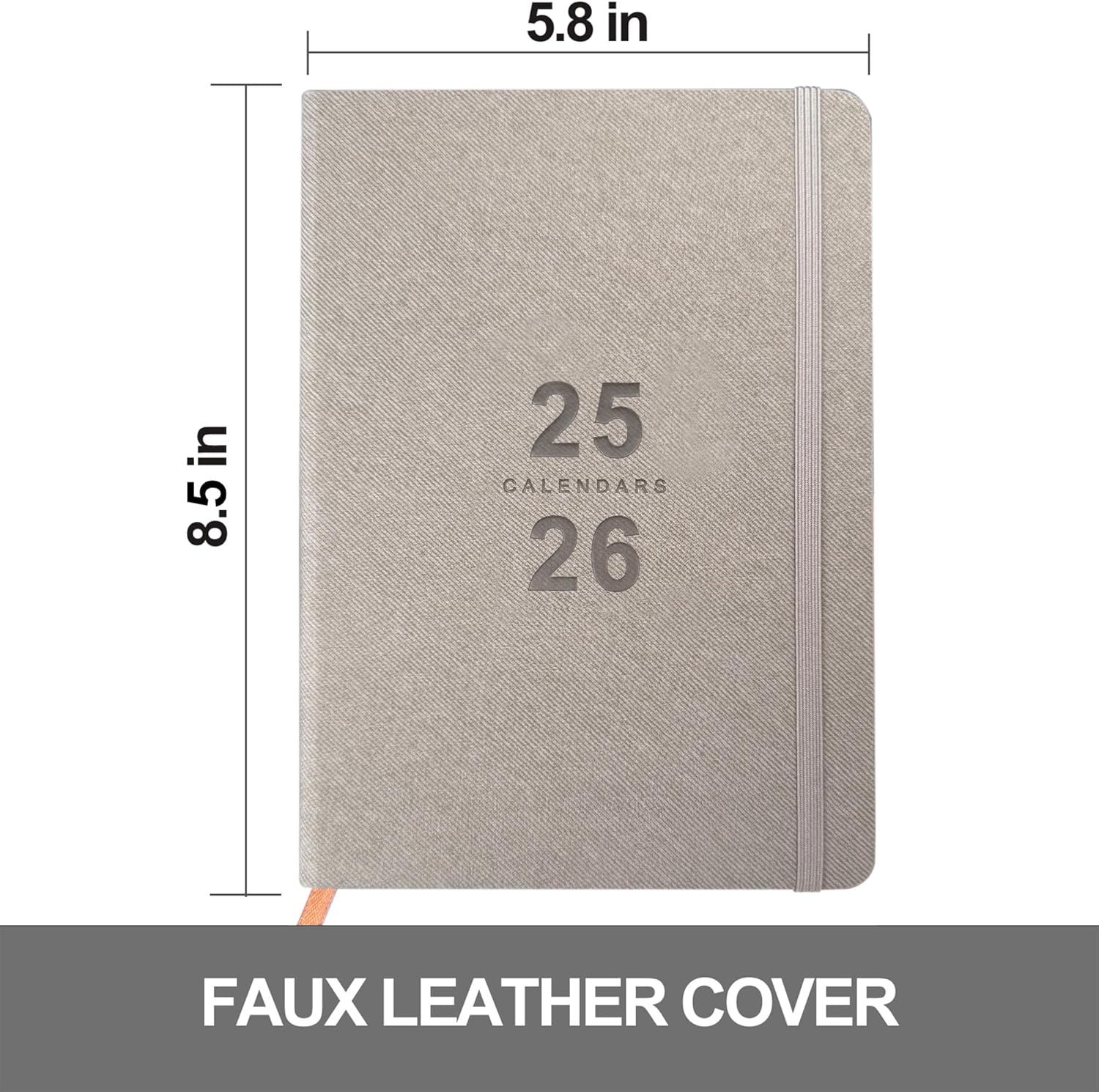 Daily Planner 2025-2026, Academic Planner 2025-2026 Weekly and Monthly Planner, Calendar Book with Hourly Schedule 8.5"x5.8", July 2025 to June 2026, Faux Leather Cover (Grey)