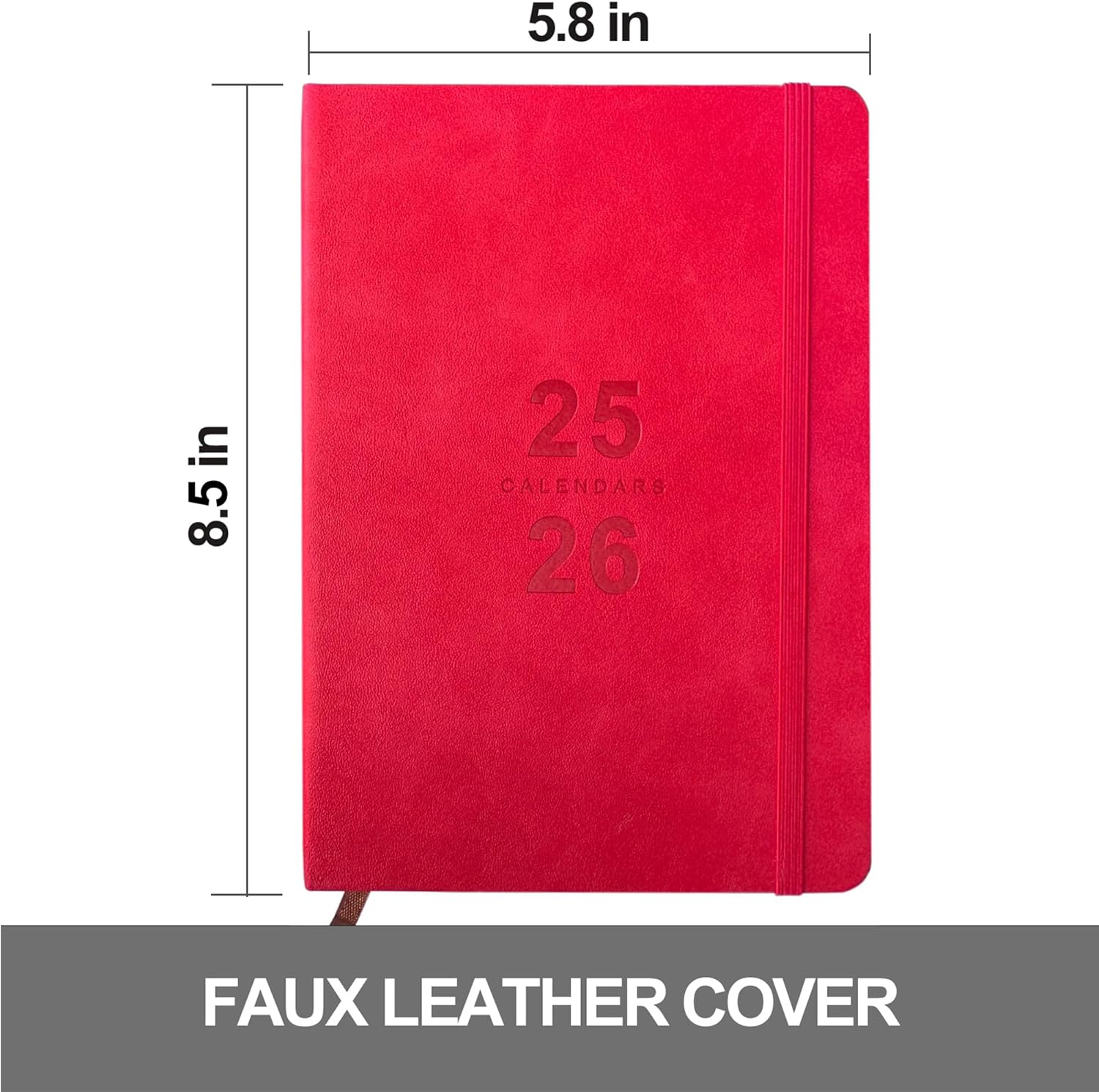 Daily Planner 2025-2026, Academic Planner 2025-2026 Weekly and Monthly Planner, Calendar Book with Hourly Schedule 8.5"x5.8", July 2025 to June 2026, Faux Leather Cover (Red)