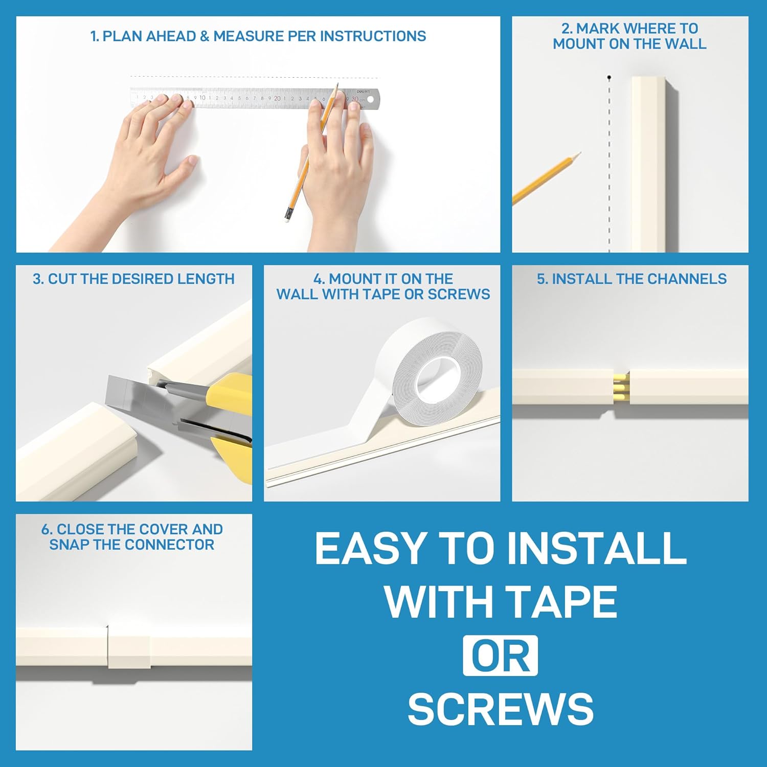 - Attach & Snap Structure for Easier Setup: Delamu cord covers for wires on wall is SUPER EASY to set up. Delamu cable hiders feature Attach & Snap design, making installation easier with click-on-and-off technology that makes opening & closing a snap. Organizing the clutter of cables in your home or office will be easier with cord hider for wall mount tv