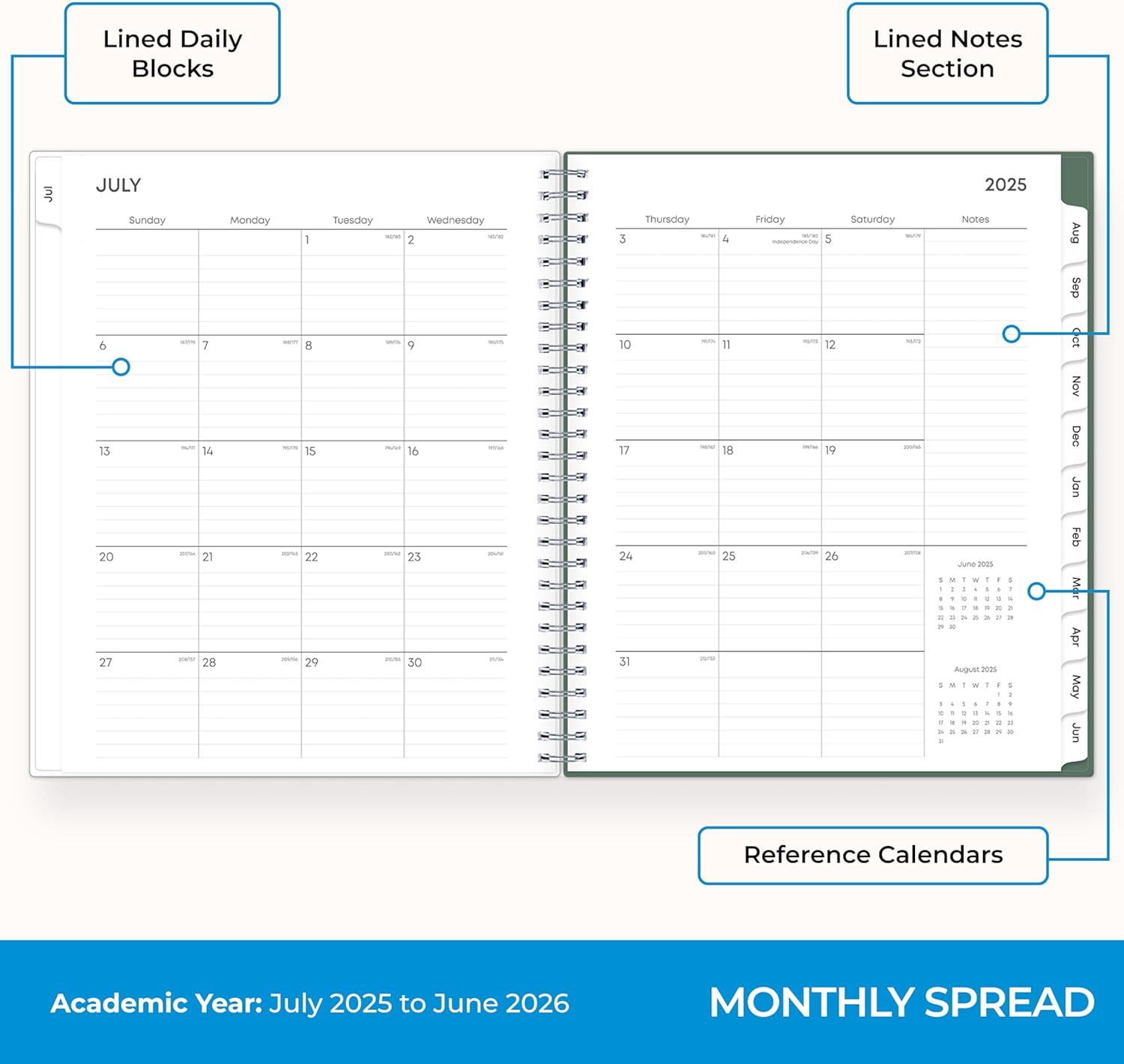 - [STAY ORGANIZED ALL YEAR] July 2025 - June 2026 professional day planner with 12 months of monthly and weekly pages for easy academic planning and scheduling