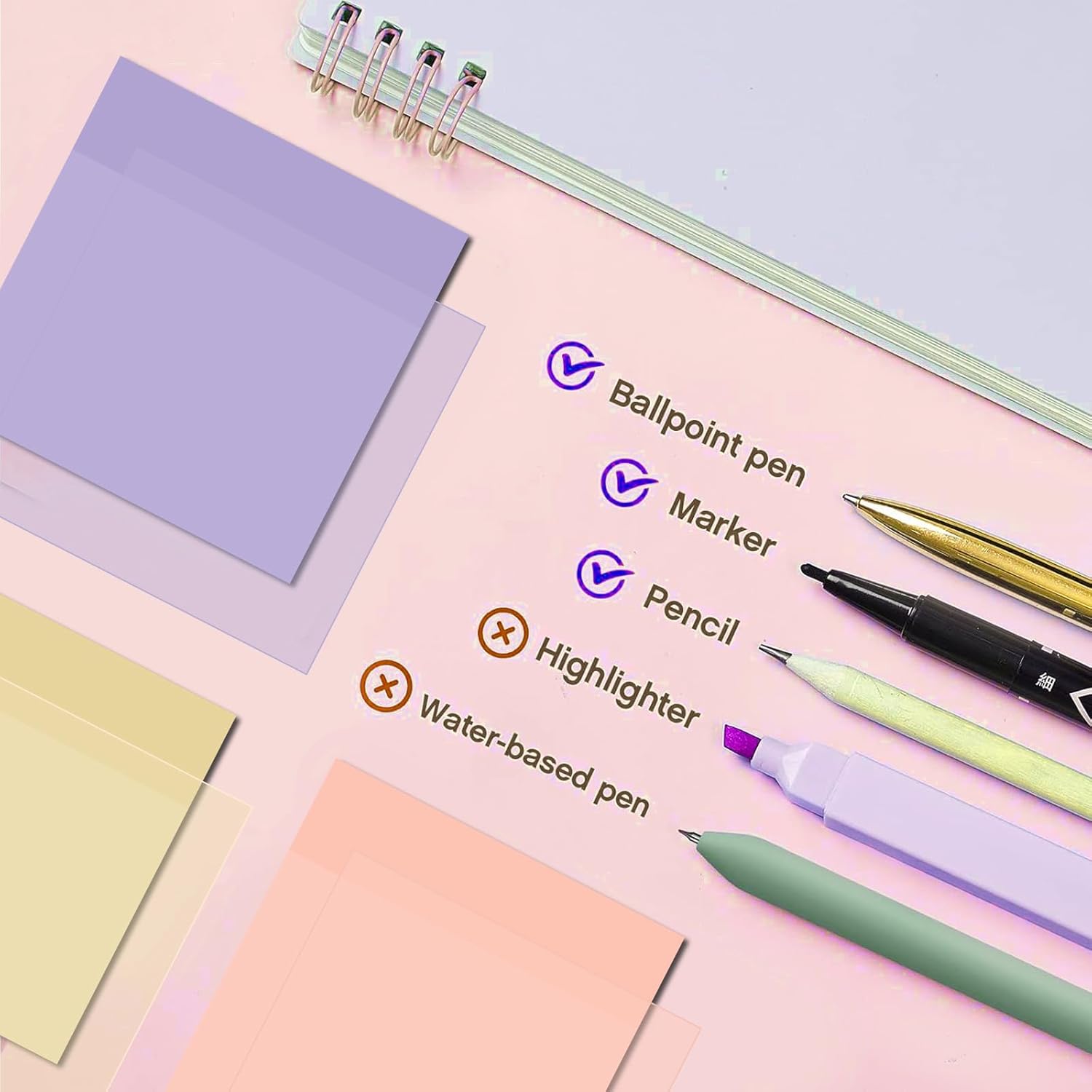 - Smooth Writing Experience: made of quality plastic body, aesthetic pens and highlighters ensures the long period use, not easy to deform or break, comfortable to hold, black ink is quick to dry, providing a fluent writing experience;The black marker is not easy to be erased when writing on the transparent sticky note, which is convenient for you to use