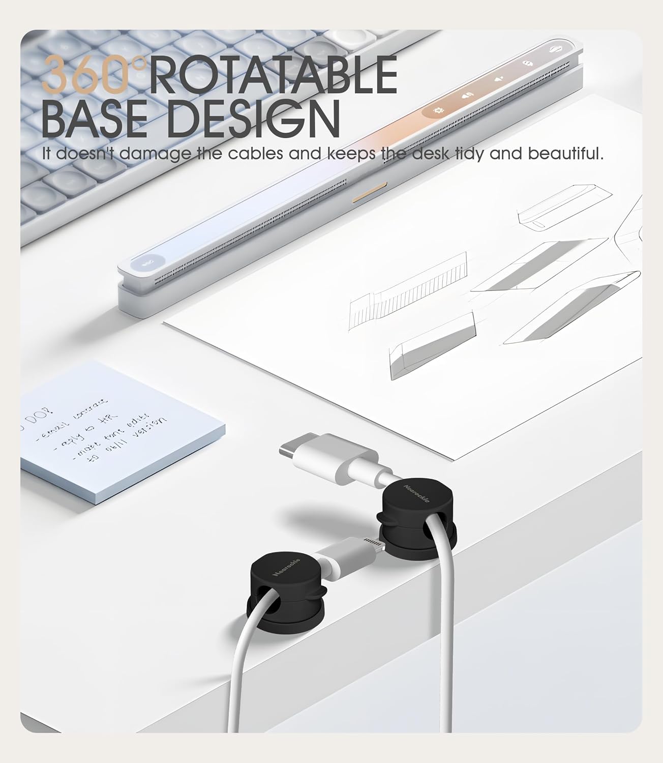 - 【360°Rotatable Base Design】Designed to protect your cables and make them easy to use! Each cable clip holds one cable, and you can rotate the base to stretch the cable in any direction. The cable will not bend and will not be damaged during long-term use. It will look like new