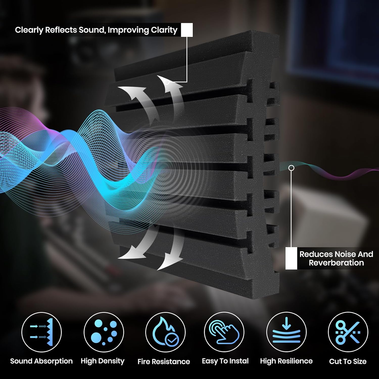 - Versatile Applications: Ideal for targeted sound treatment in studios, offices, and beyond. These panels are also perfect for recording studios, vocal booths, and control rooms, offering a versatile solution for any soundproofing need.