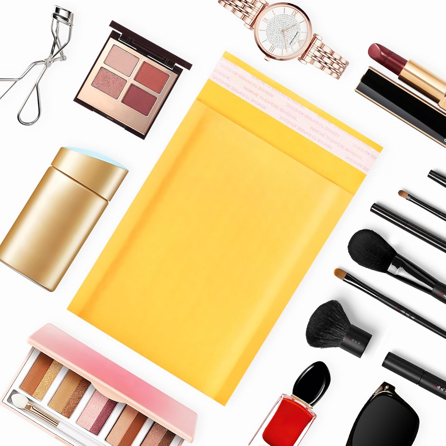 Kraft Bubble Mailers 4x7inch 100Pack Yellow Self-Seal Padded Envelopes Bubble Opaque Padded Mailers Shipping Bags for Small Businesses to Package and Mail Jewelry Cosmetics, Electronic Products, Cards