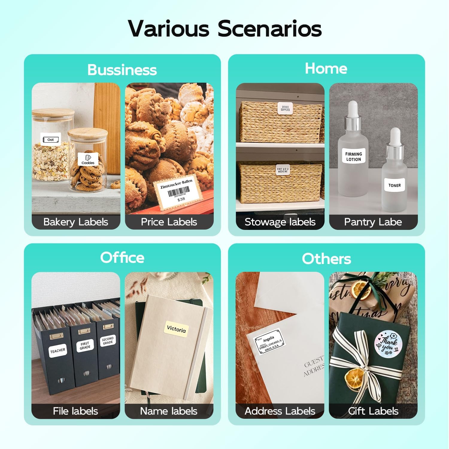 - Included Components : 1x 40x30mm thermal labels, 1x M120 label printer, 1x USB Type-C Cable, 1x Users' manual