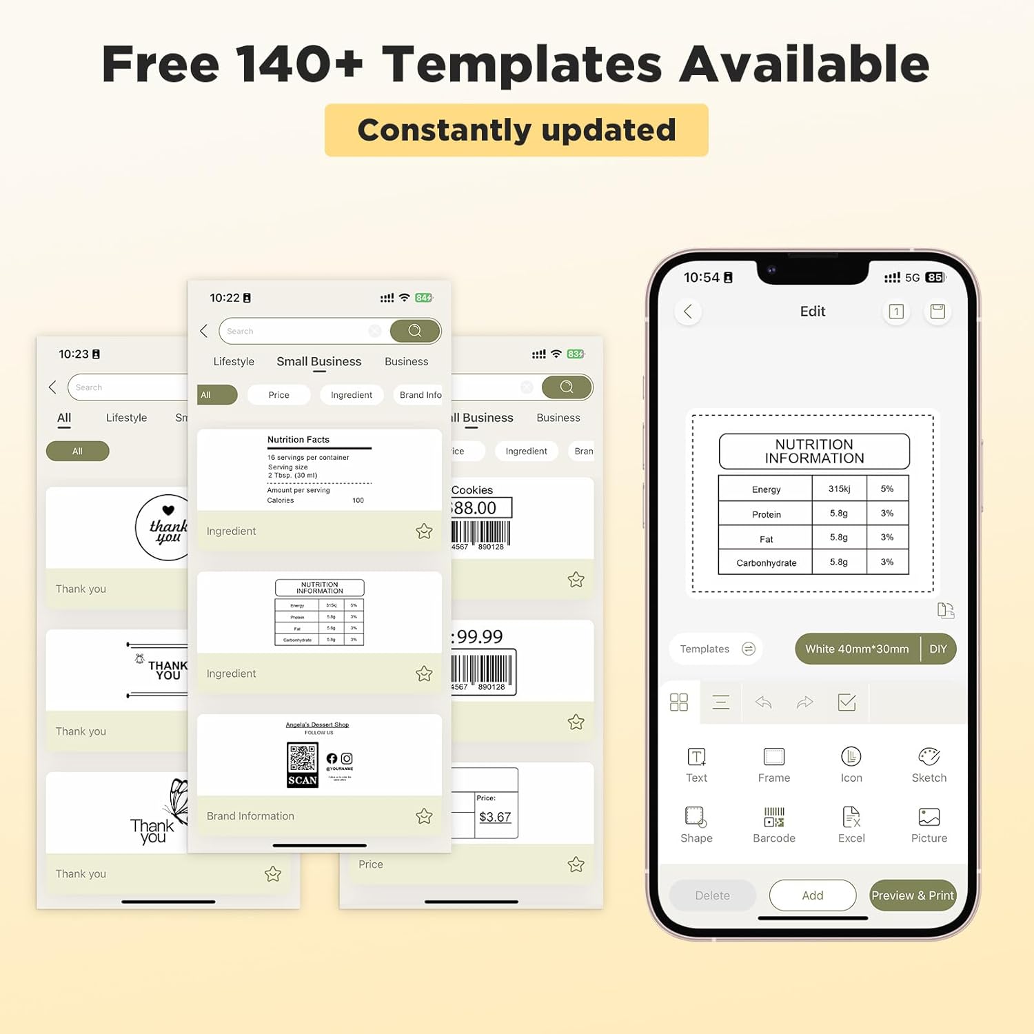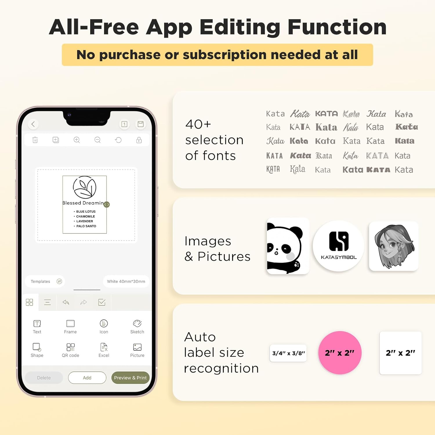 - Versatile App Editing Function: Easily add images from your phone, tablet or PC; customize your labels with 40 fonts, 30 frames, and 450+ icons; all free to use