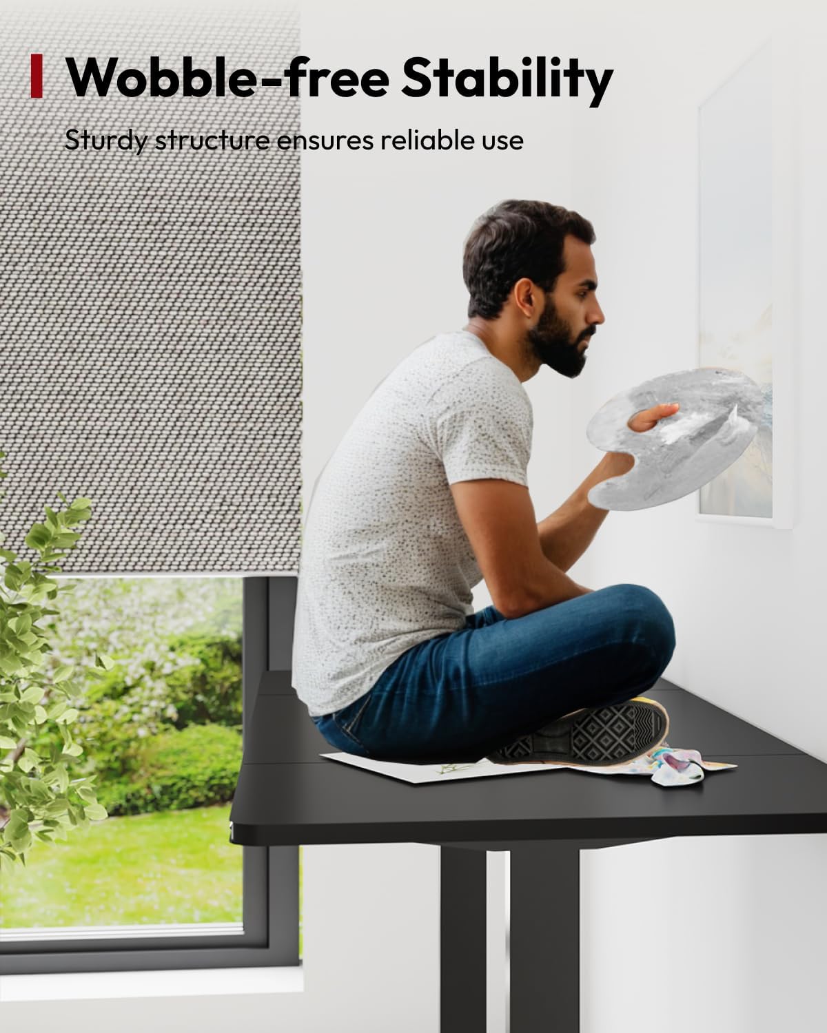 - Ergonomic Workspace: The spacious 63” x 28” adjustable desktop offers a roomy setup that promotes an ergonomic workspace.