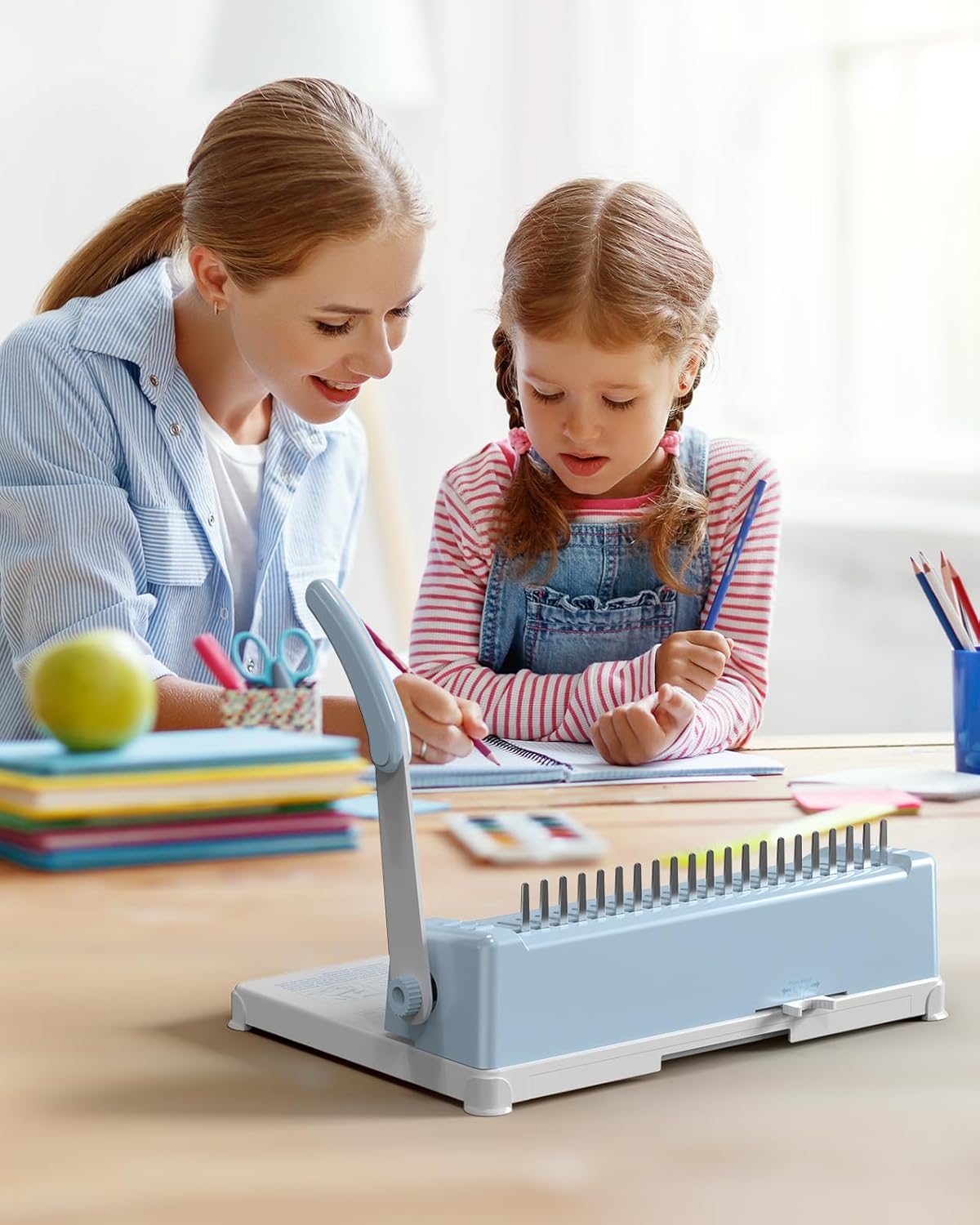 - WIDE RANGE OF USES: Our comb binding machine can be used for custom work planners, scrapbooks, mini-books, school projects, journals, and more. Quickly and easily bind your books and documents, perfect for homeschool use and for managing any type of small office-related project