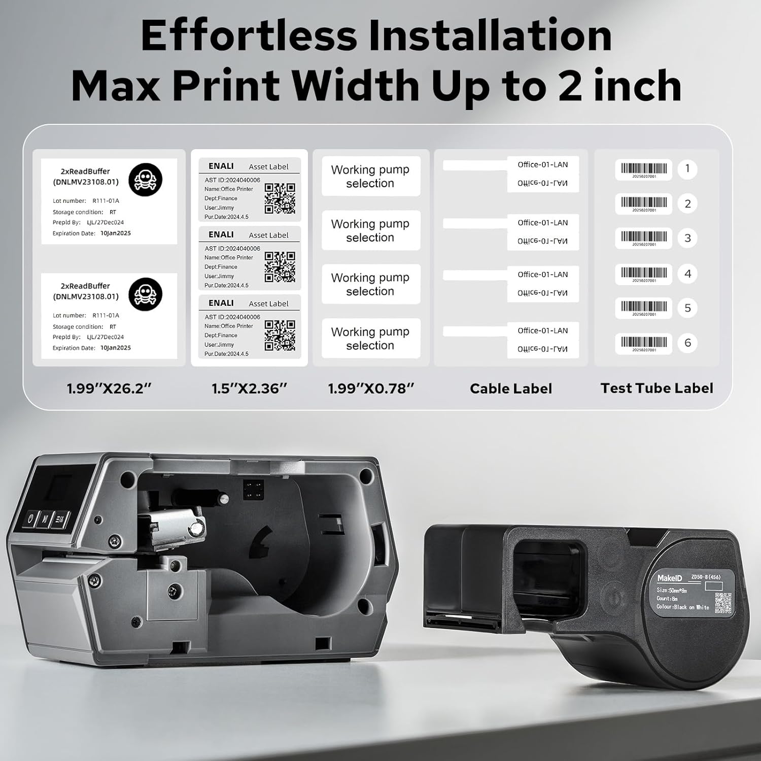 Makeid D50 Industrial Label Printer, Desktop Label Maker 2" Print Head, Mobile APP & PC Editor Compatible, 2600mAh Li-ion Battery, Come with 1.97" W x 26.24ft L Label Heavy-Duty Labeler for Job Sites