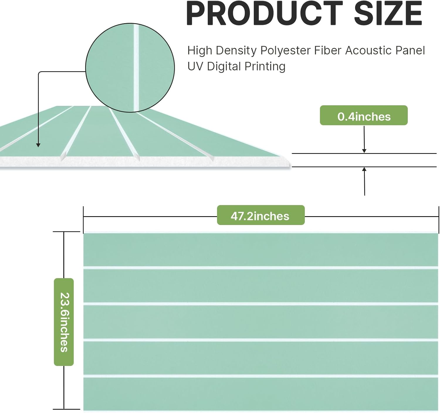 Acoustic 4 Pack Soundproofing UV Print Panels, 47.2” x 23.6” x 0.4” Adhesive Noise Dampening Wall Panels for Home Studio, Office, Gaming Room, and Theater(Green)