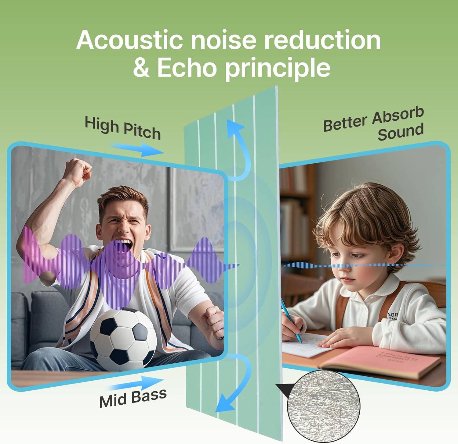 - [Superior Noise Absorption] Made from high-density polyester fiber, these panels effectively absorb unwanted noise, echoes, and reverberations. With a noise reduction coefficient of 0.92 and an absorption coefficient of 0.8, they deliver superior soundproofing performance compared to ordinary foam panels.