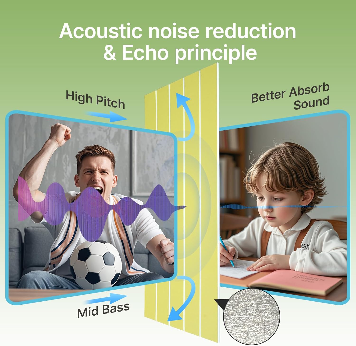 - [Superior Noise Absorption] Made from high-density polyester fiber, these panels effectively absorb unwanted noise, echoes, and reverberations. With a noise reduction coefficient of 0.92 and an absorption coefficient of 0.8, they deliver superior soundproofing performance compared to ordinary foam panels.