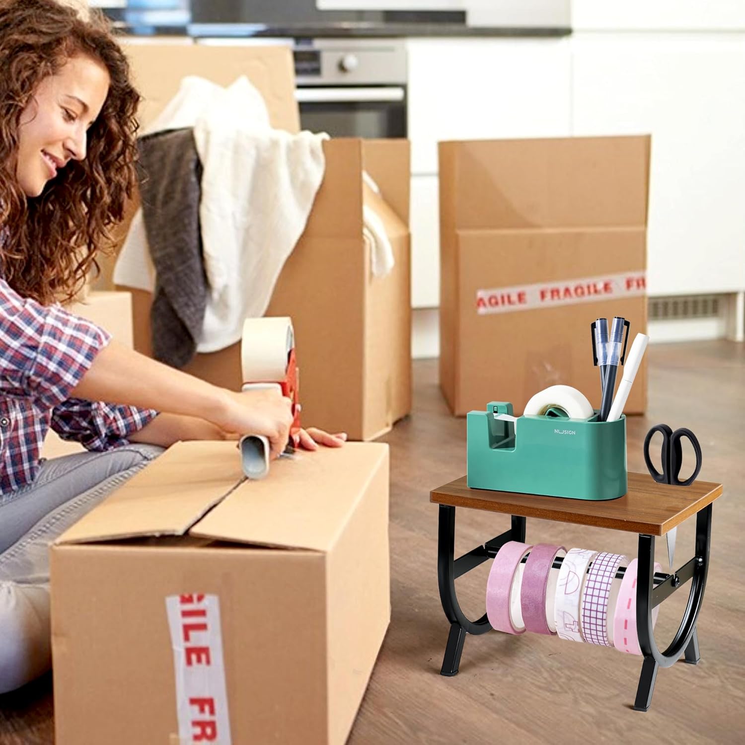 - STURDY CONSTRUCTION: Our label holder for thermal printer are made of durable wood and iron, with better load bearing capacity , which can put down different types of label machines. It also has a non-skid pad design on the bottom, so that the sticker roll holder can remain stable during the use of the labeling machine