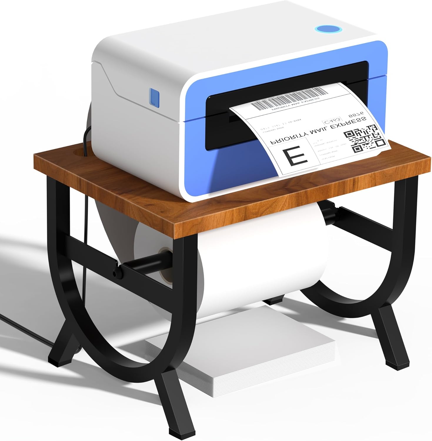 - MULTI-FUNCTIONAL LABEL HOLDERS: Designed with functionality in mind, our label roll holder can store printers on top and rolls of labels and folded labels underneath. The upper level has holes on both sides to hide power cords and provides space for removable sticks to keep your workspace organized