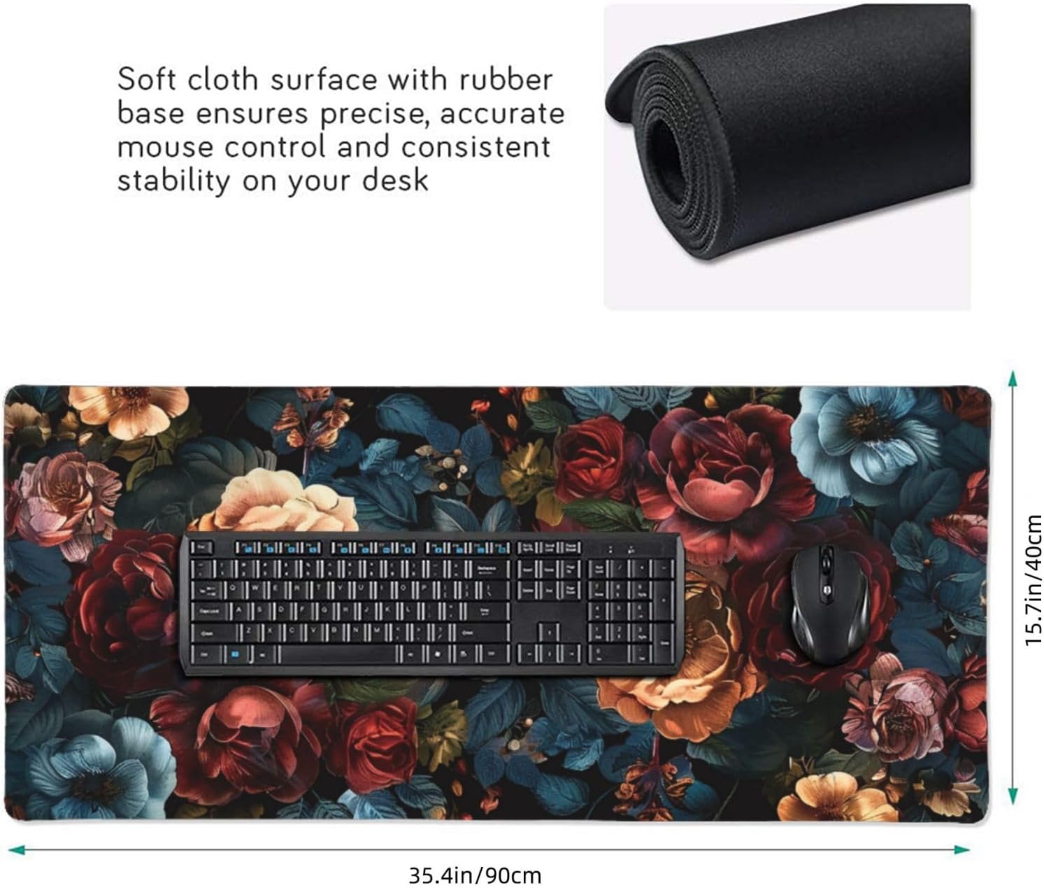 35.4 x 15.7 in, Waterproof XXL Large Mouse Pad for Desk, Extended Keyboard Mouse Mat for Computer Office, Big Laptop Mouse pad, Gaming Pc-Vintage Chic Rose Flowers