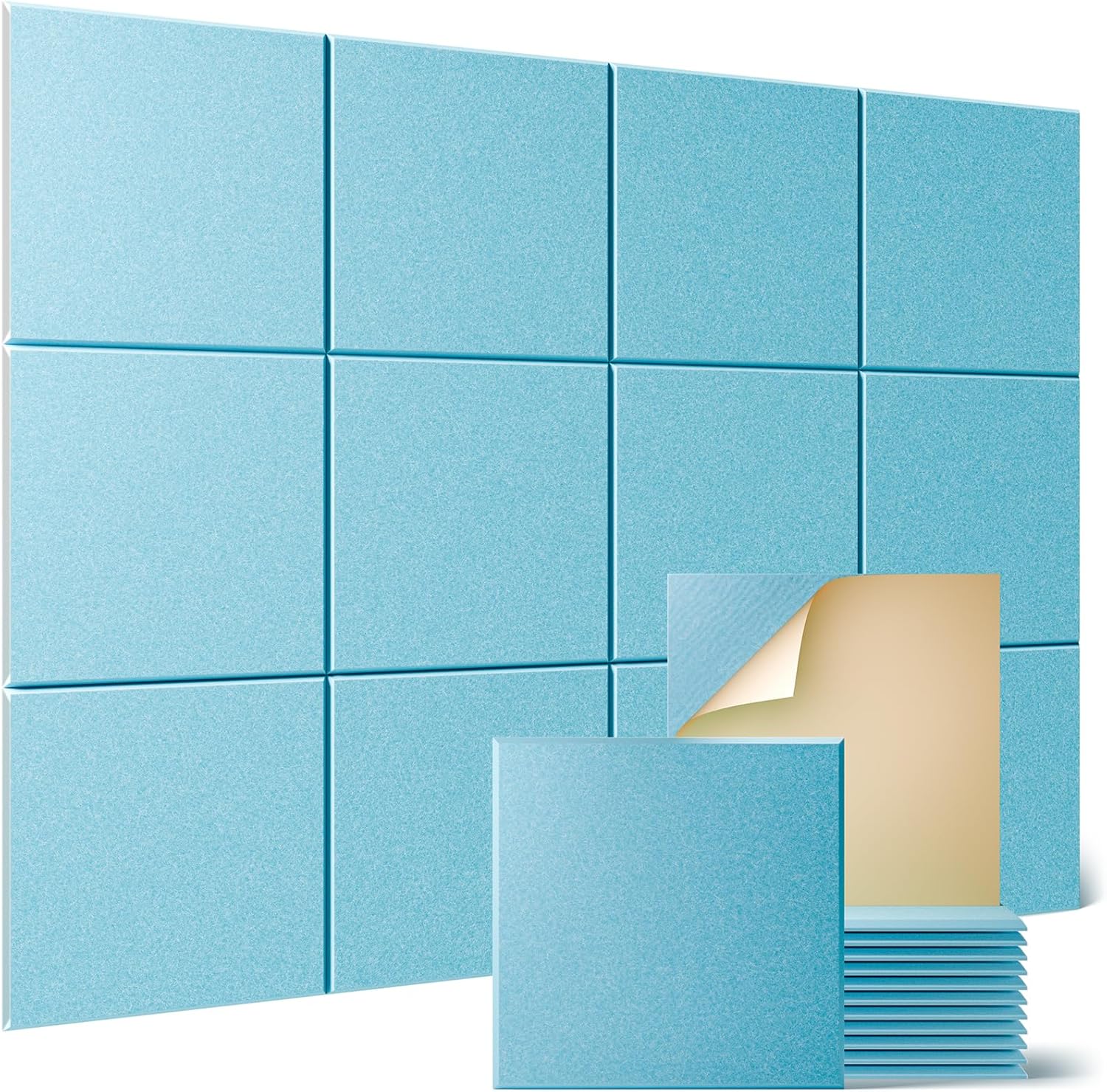 Sonicism 12 Pack Acoustic Wall Panels with Self-Adhesive, 12" X 12" X 0.4" Sound Proof Foam Panels, Decorative Soundproof Wall Panels, Sound Proof Absorbing Tiles for Home & Offices, Light Blue