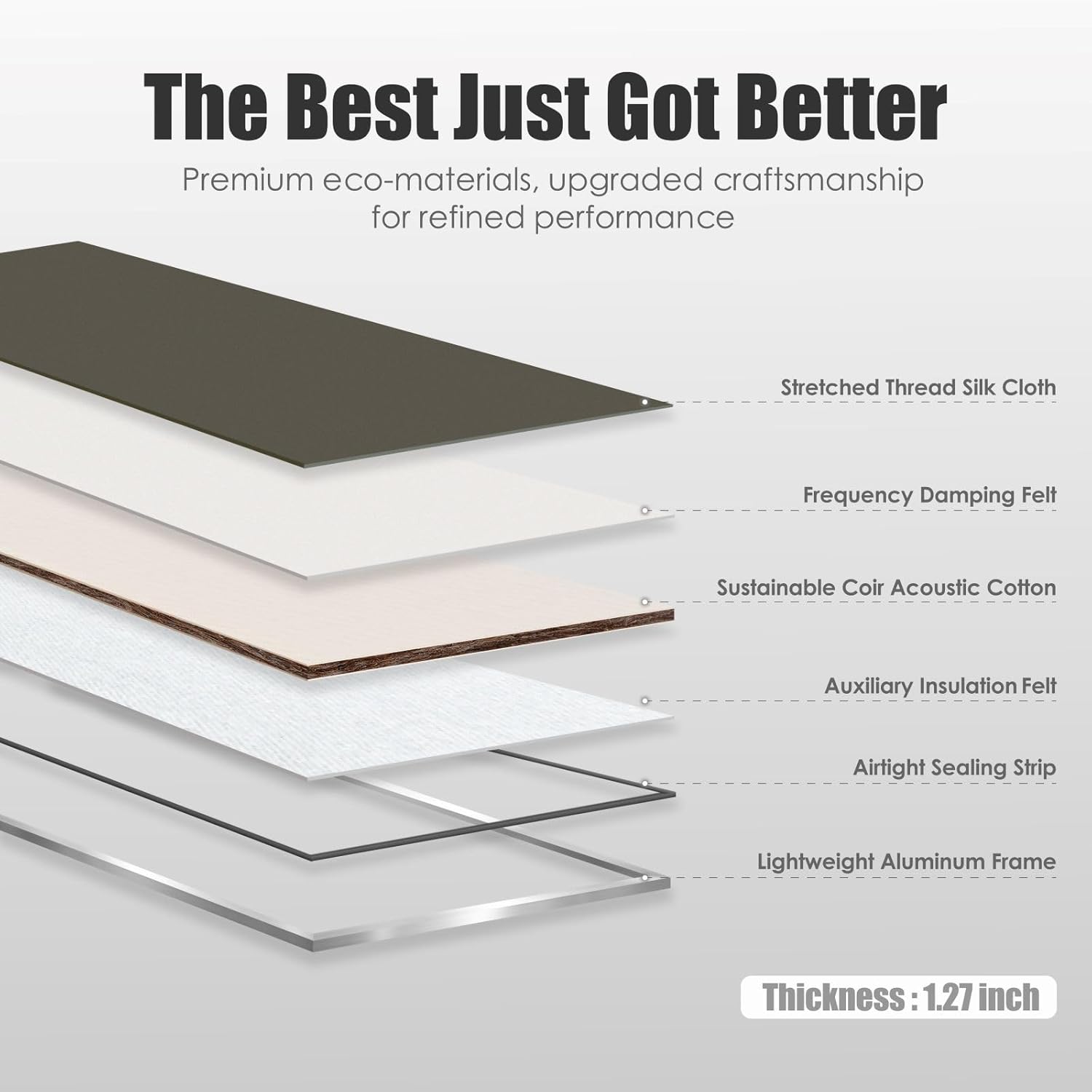 - ADVANCED FABRIC COMPOSITE-The panel is wrapped in elastic fabric, with micro-absorption holes that reduce reverb and eliminate dust emissions, ensuring a cleaner, healthier space.