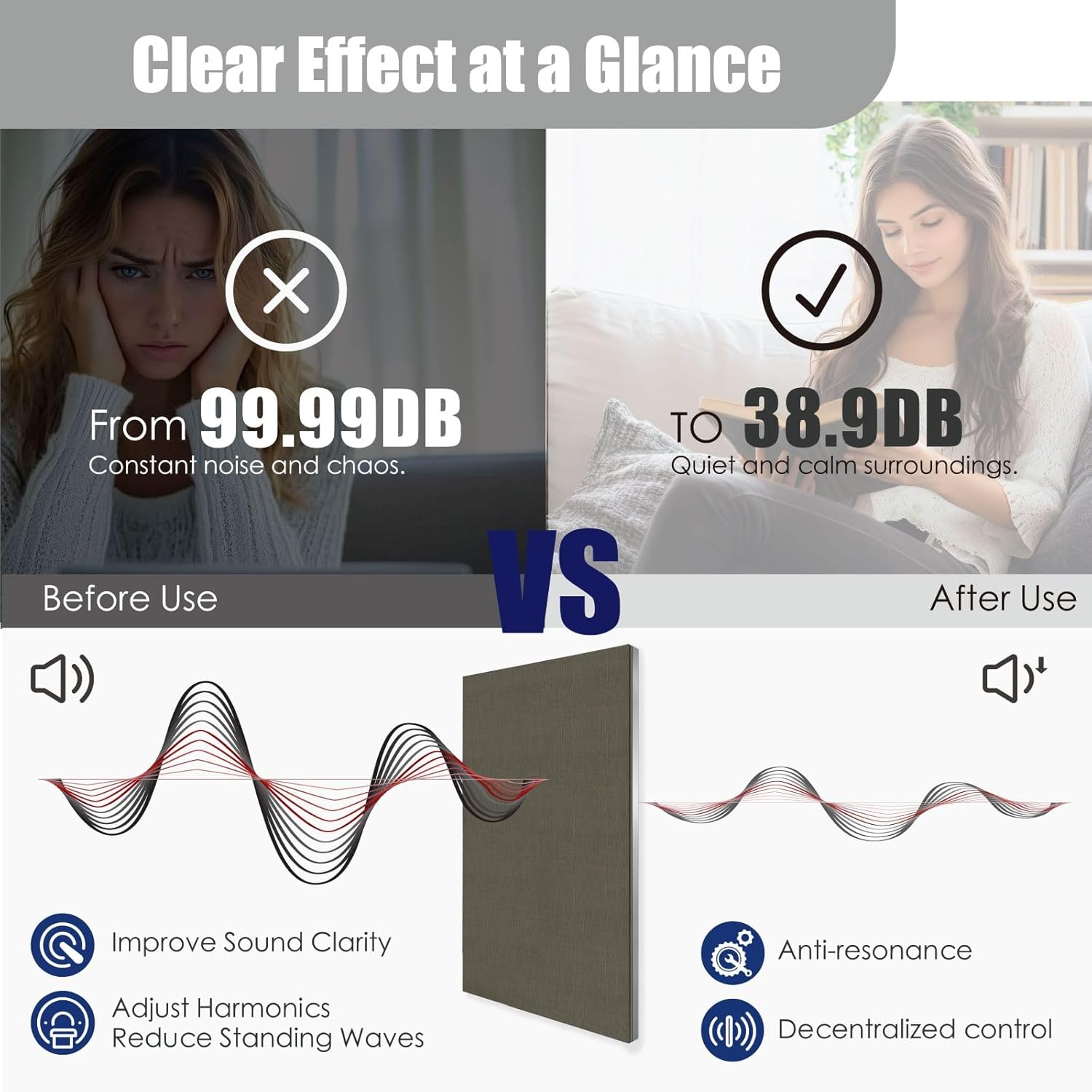 - PREMIUM SOUND ABSORPTION-Effectively reduces harmonics and standing waves, disperses sound waves, and improves speech clarity for a balanced, noise-controlled environment.