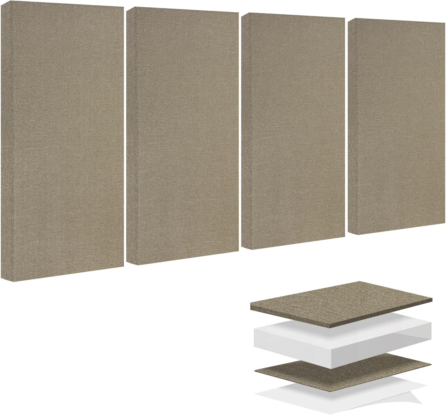 BUBOS 4 PCS Fabric Acoustic Panels,23.6''x11.8''x2'' Sound Proof Panels for Walls,Self-adhesive Soundproof Wall Panels for Echo Absorption for Home Studio Office,Standard CavityPro Flaxen