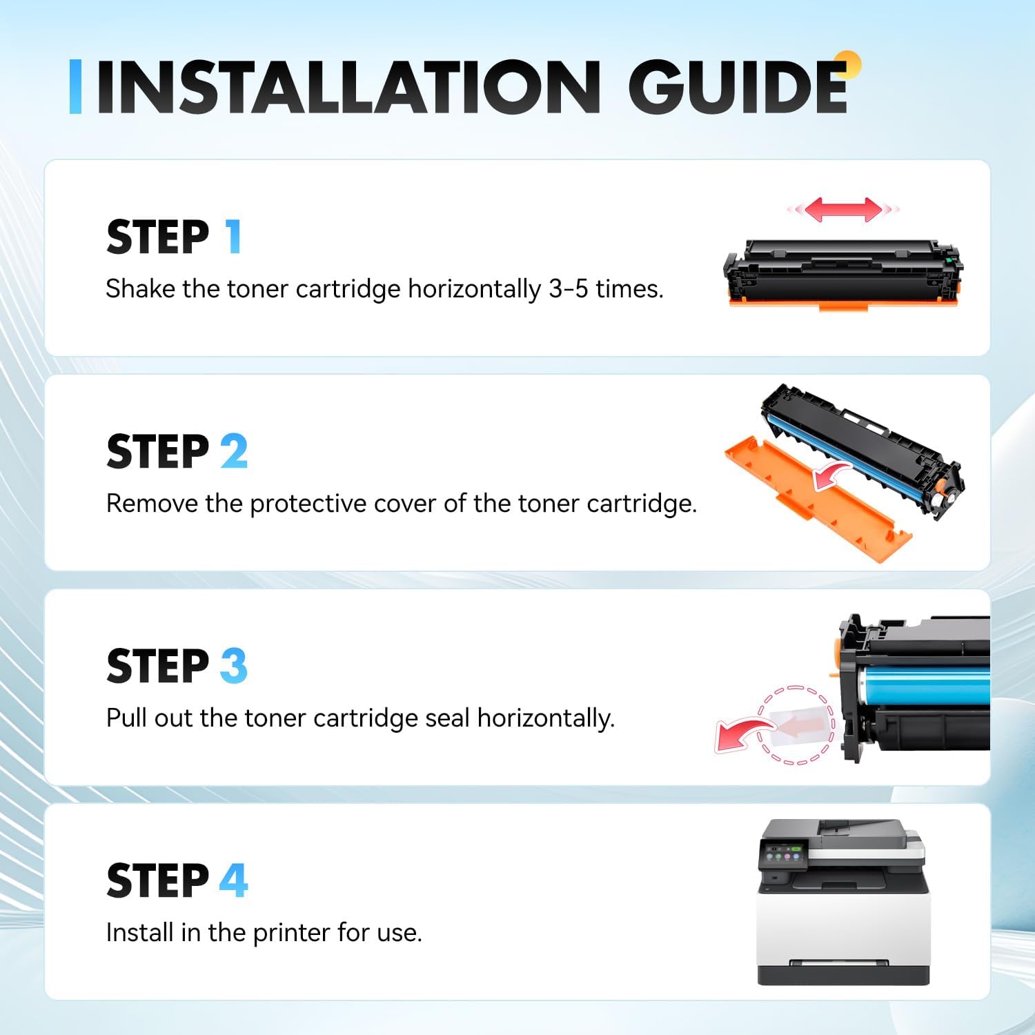 - Convenient Installation: Our 218A 218X toner cartridge is designed for easy installation, allowing users to effortlessly replace the cartridge and resume printing without any hassle.With Latest Chips: Our toner cartridge 218A 218X is equipped with the latest upgraded chips to ensure perfect compatibility with printers and excellent print quality, you can enjoy worry-free and efficient printing