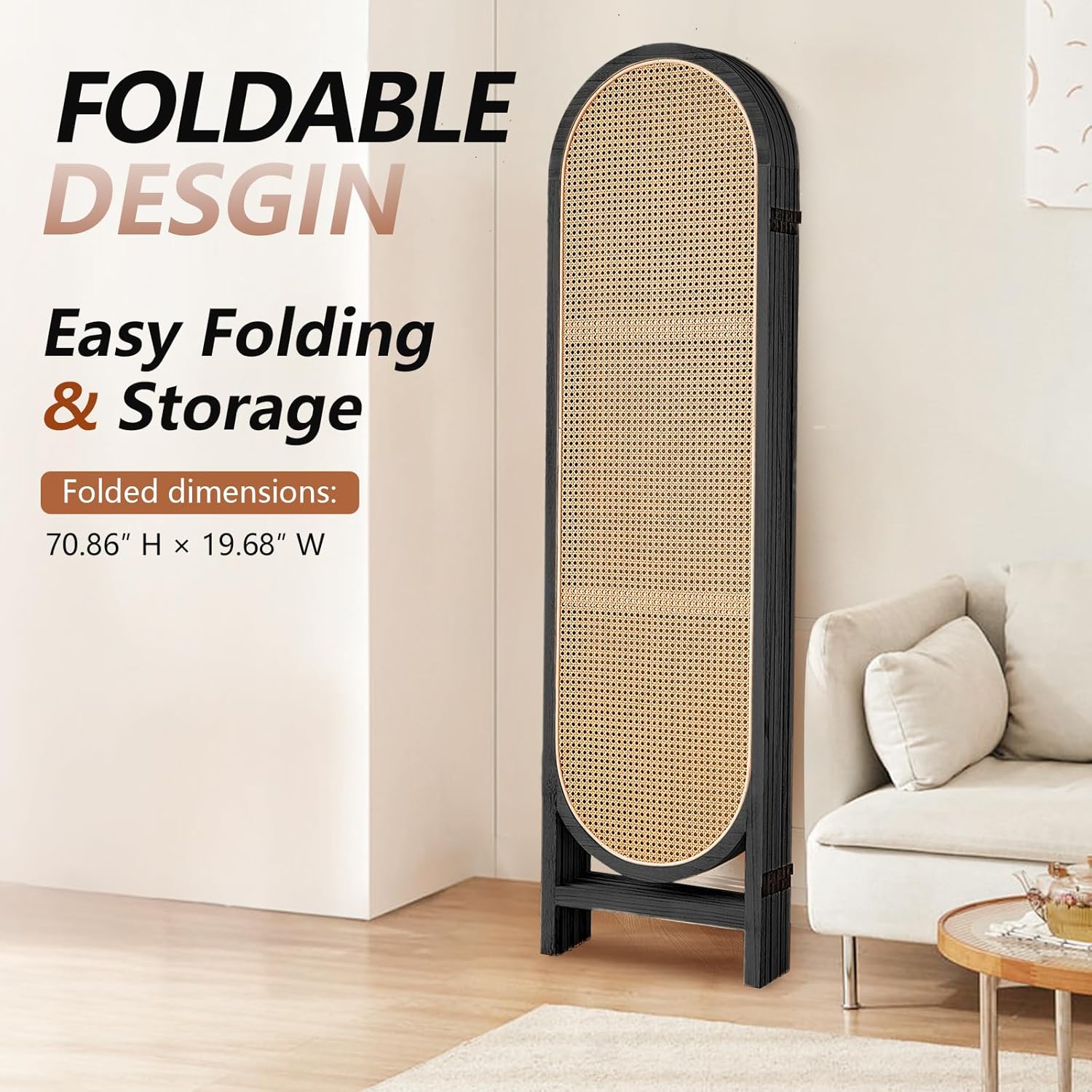 - Foldable Portable Room Divider Panel: Each panel of the rattan room divider screen is connected by two 360° two-way foldable metal hinges. You can fold the wood room divider to any direction and adjust the size of the space as you like. When the rattan room divider is not in use, you can fold the indoor privacy screen completely, so it is easy to store without taking up too much space, which is very suitable for small apartments and limited spaces