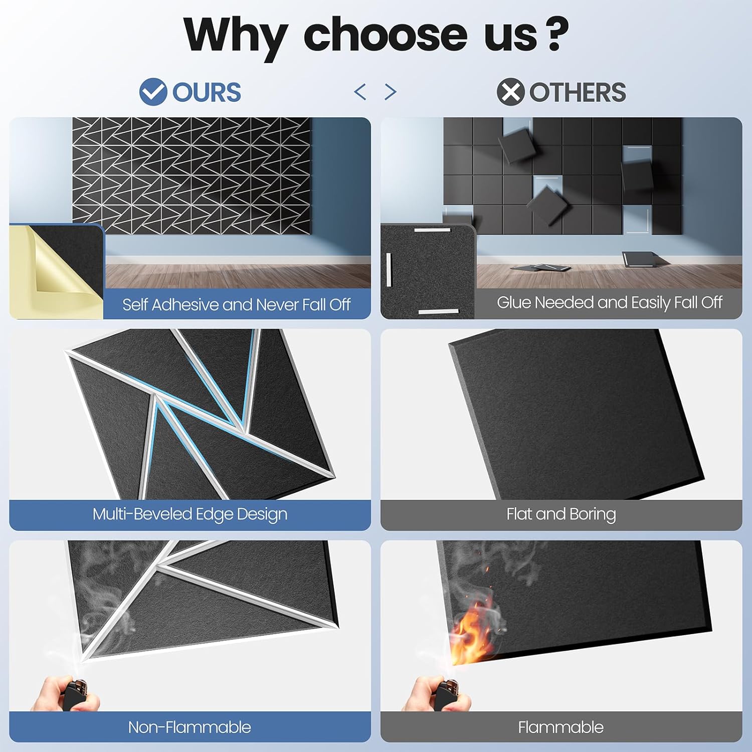 - 【Eco-friendly and Materials Safety】Made of 100% polyester fiber,they are no smell and B1 class flame retardant.No any risk when you stay in a room with our acoustic foam panels for a long time
