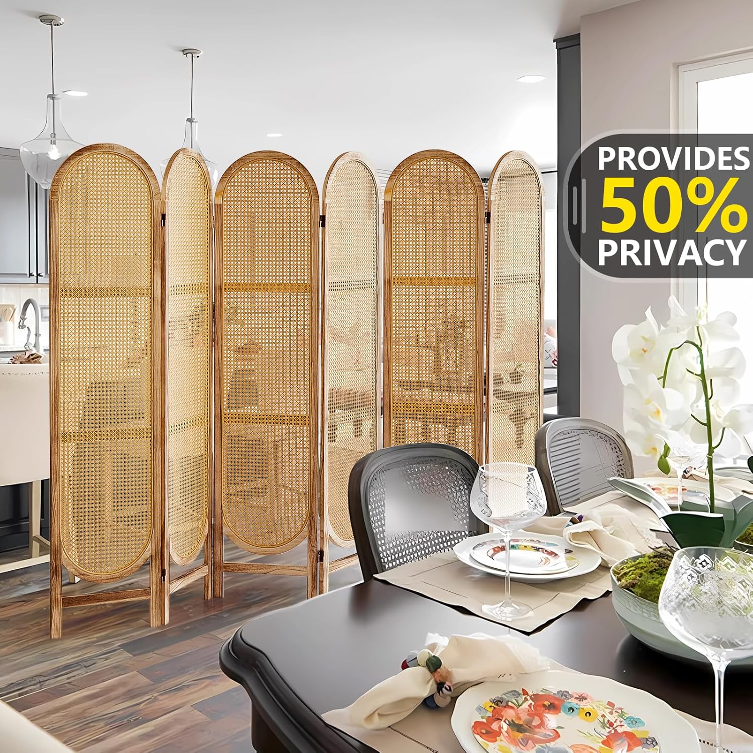 - Great for No Wall Art Solutions: This 5.6 ft tall folding wooden room divider screen can easily provide extra private space for living room, bedroom, etc. with an elegant design that protects some of your privacy while decorating your room. The room divider provides 50% privacy with 50% visibility through the woven rattan. So rattan room divider screens can keep your space bright and breathable. But because of this, you may lose some privacy. If you mind, please buy with caution
