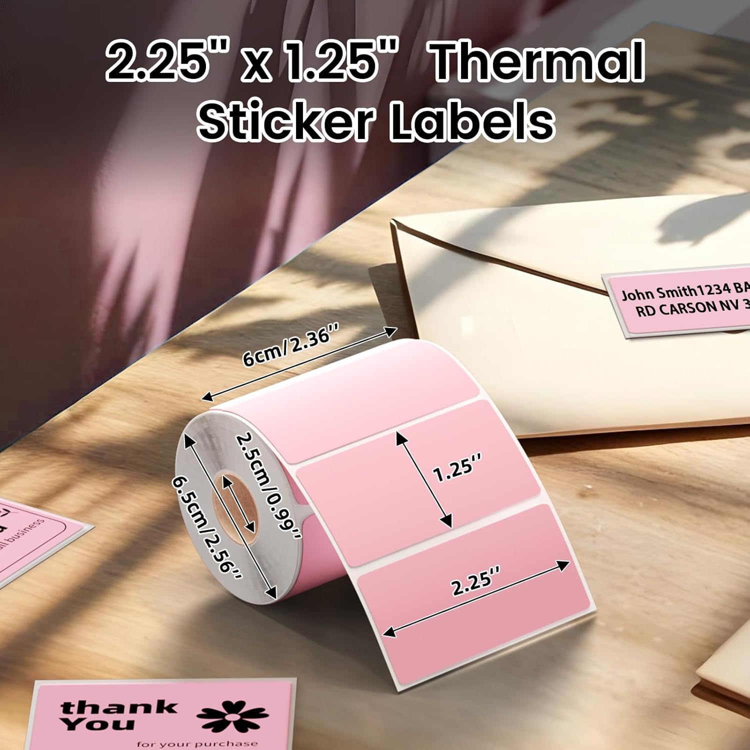 2.25x1.25 Inch Thermal Labels Pink, Holographic Sliver Barcode Thermal Labels for Thermal Printer and Small Business, Multi-Purpose Rectangle Stickers, 500 Sheets/Roll