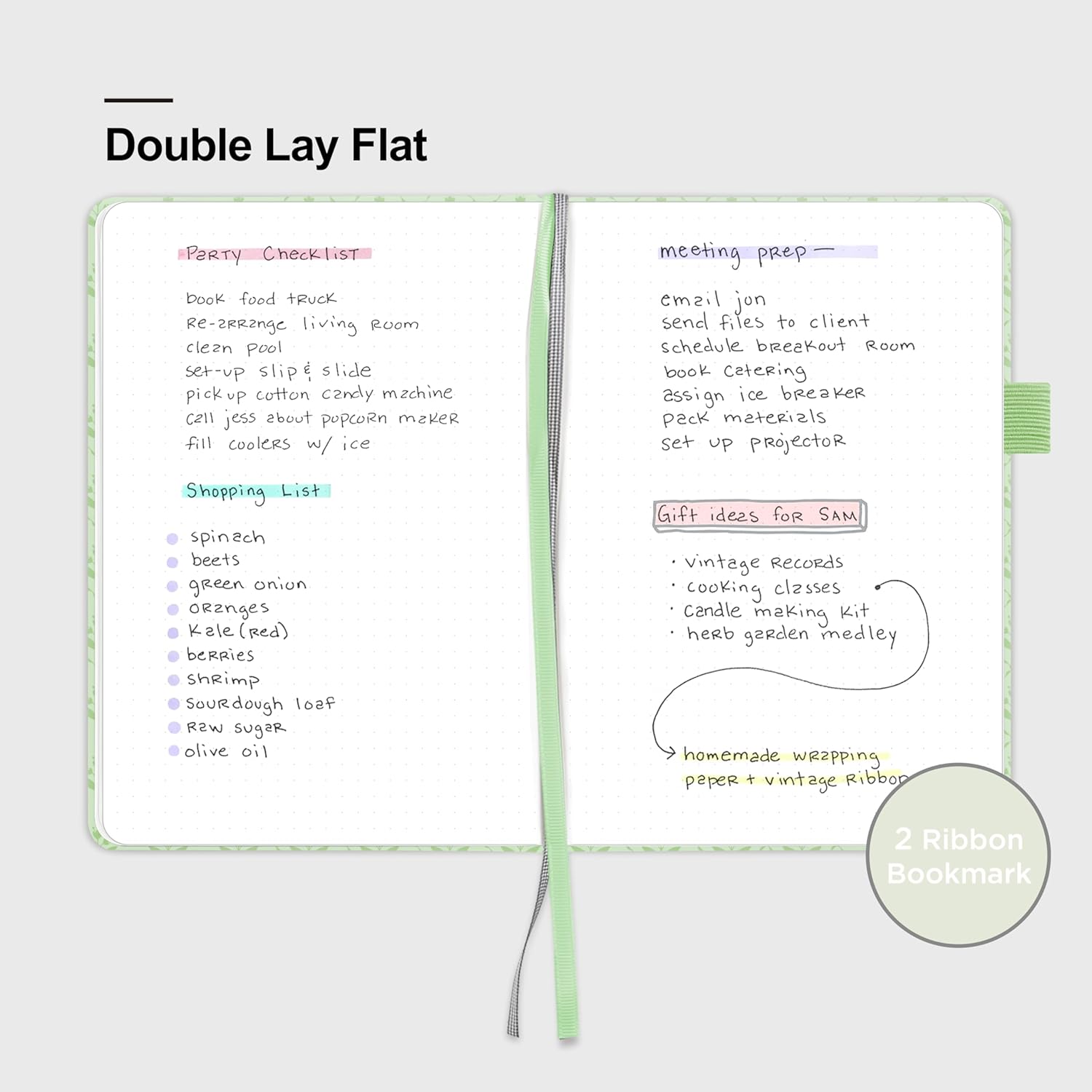 - 180° LAY-FLAT DESIGN: The lay-flat design allows for easy writing and ensures that you can utilize every page efficiently. Journaling, note-taking and planning has never been easier! 2 Bookmarks to help you find important content faster