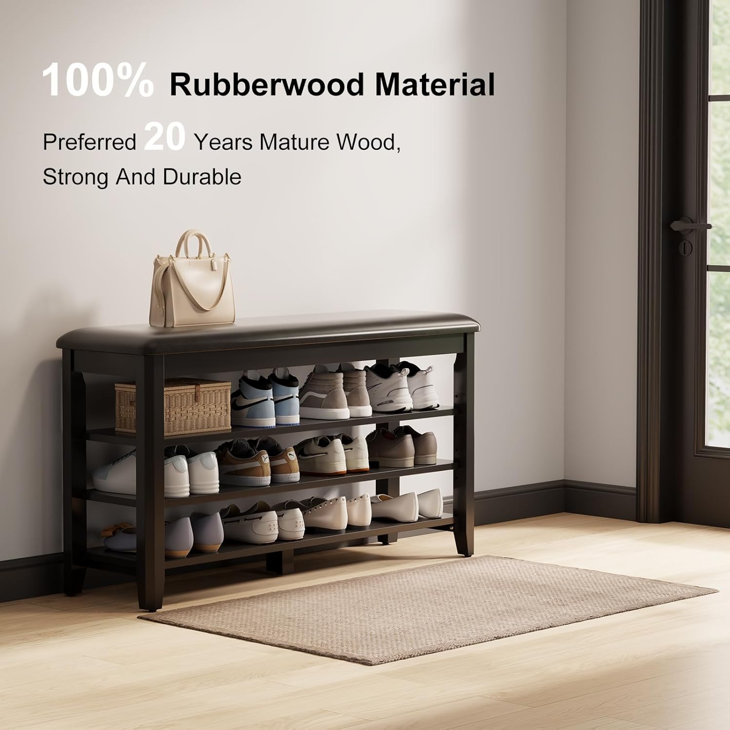 - Durable Rubberwood Construction:Made from 100% sturdy rubberwood, this entryway bench can support up to 500 lbs, making it ideal for entrances, hallways, and mudrooms. Its robust frame ensures long-lasting stability.