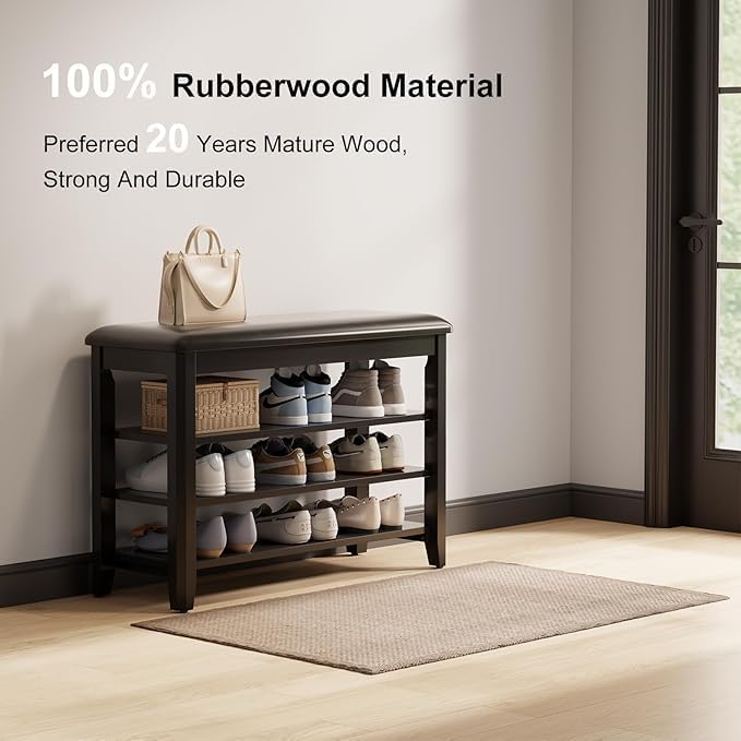 - Durable Rubberwood Construction:Made from 100% sturdy rubberwood, this entryway bench can support up to 500 lbs, making it ideal for entrances, hallways, and mudrooms. Its robust frame ensures long-lasting stability.