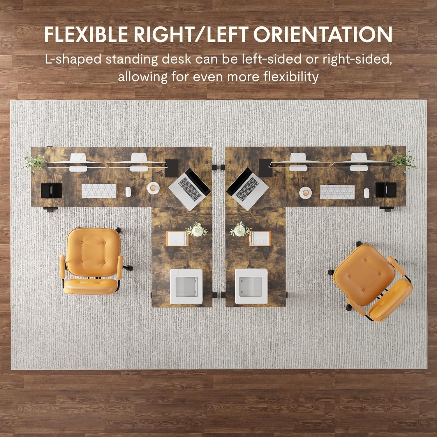 FLEXISPOT L Shaped Standing Desk, 63 x 47 Inch Electric Height Adjustable Corner Desk, Sit Stand Computer Workstation, Preset Controller, Home Office, Black Frame with Rustic Brown Top, Black Drawer