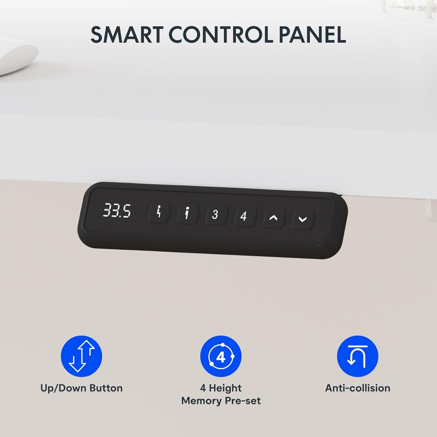 - 【CUSTOMIZABLE LED CONTROL PANEL】The LED control pad allows you to customize the desk height with 4 different memory settings, enabling easy switching between your preferred standing and sitting positions.