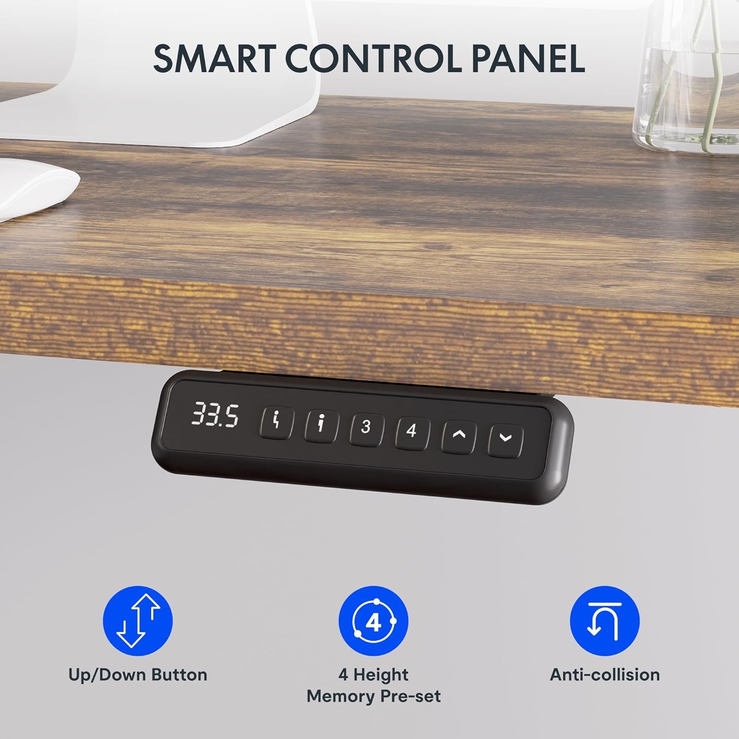 - 【CUSTOMIZABLE LED CONTROL PANEL】The LED control pad allows you to customize the desk height with 4 different memory settings, enabling easy switching between your preferred standing and sitting positions.