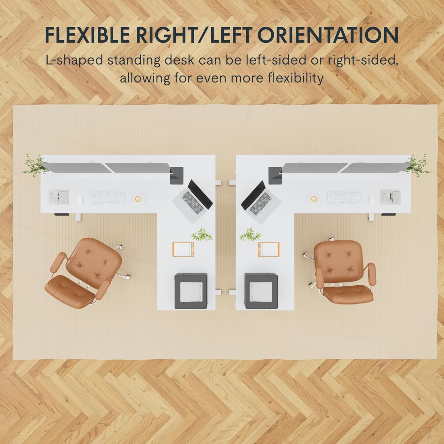 FLEXISPOT L Shaped Standing Desk, 63 x 55 Inch Electric Height Adjustable Corner Desk, Sit Stand Computer Workstation, Preset Controller, Home Office, White Frame with White Top, White Drawer
