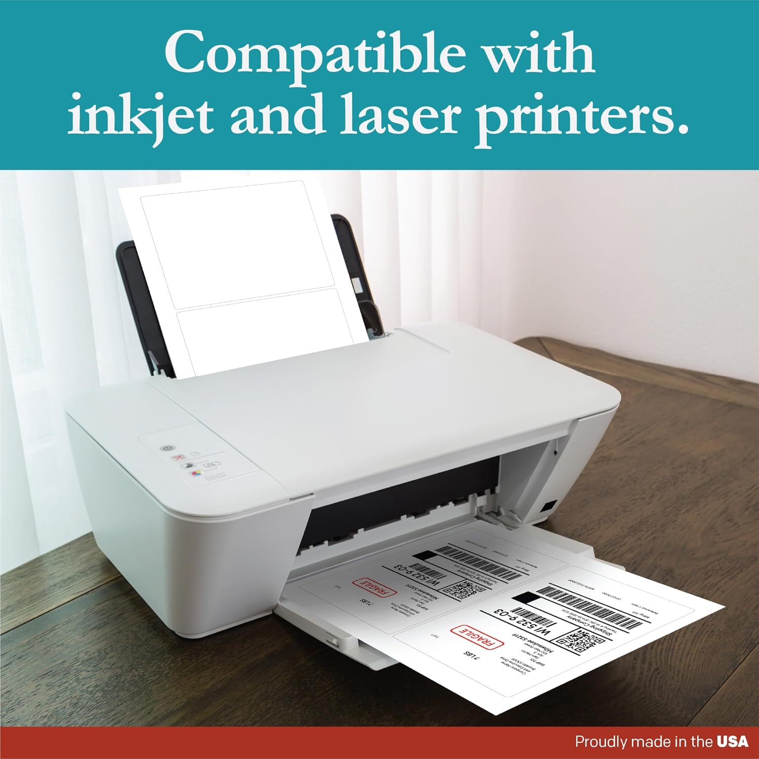 Premium Label Supply White Sticker Shipping Labels – 7" x 5" – Laser/Inkjet Compatible – (2 per Sheet), 500 Sheets – 1000 Total Adhesive Labels