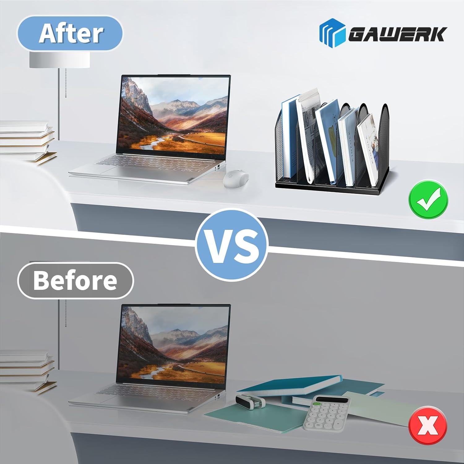 5-Section Vertical Desktop Organizer, 5-Section Mesh File Folder Stand Sorter for Office Home Classroom Organization (1, Blue)