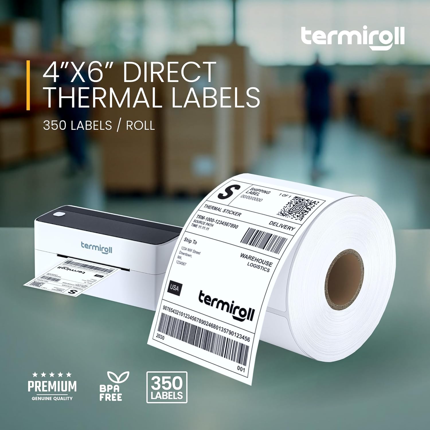 4x6 Thermal Labels – 350 Labels/Roll – Direct Thermal, Non-Perforated – Compatible with Rollo, Zebra, iDPRT, MUNBYN – Strong Adhesive, BPA-Free – Commercial Grade by TERMIROLL