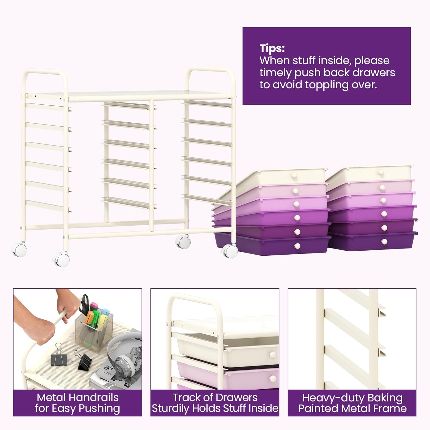 Giantex 12 Drawers Rolling Cart, Mobile Storage Drawer Cart, Classroom Organizer Cart for Office School Supplies Tools Scrapbook Paper Craft Small Printer, Utility Cart on Wheels, Purple Gradient