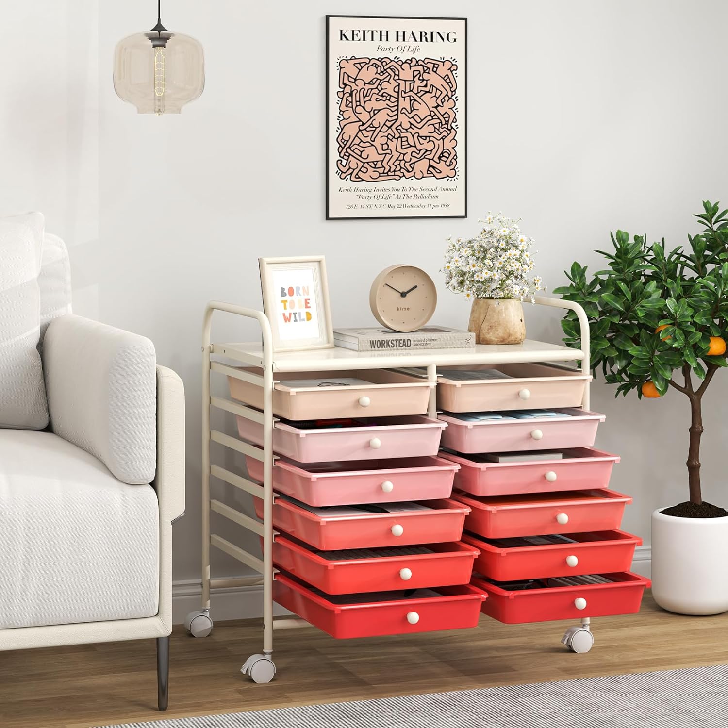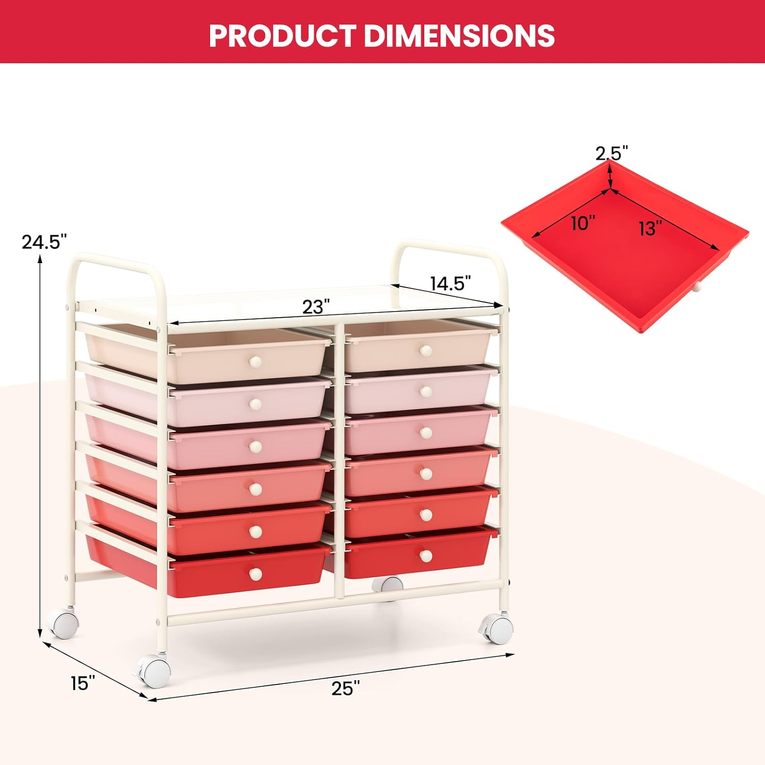 Giantex 12 Drawers Rolling Cart, Mobile Storage Drawer Cart, Classroom Organizer Cart for Office School Supplies Tools Scrapbook Paper Craft Small Printer, Utility Cart on Wheels, Pink Gradient